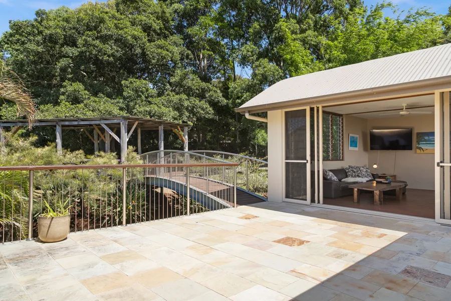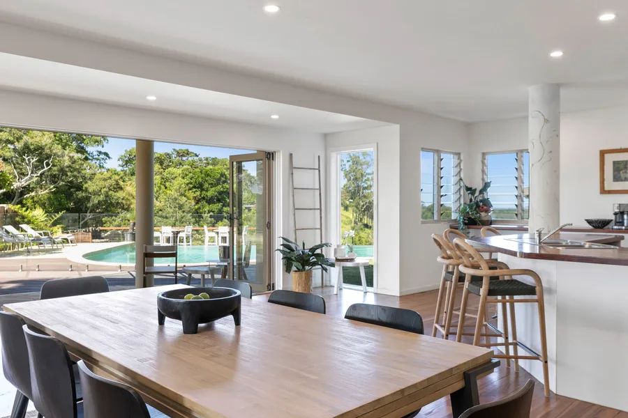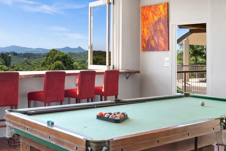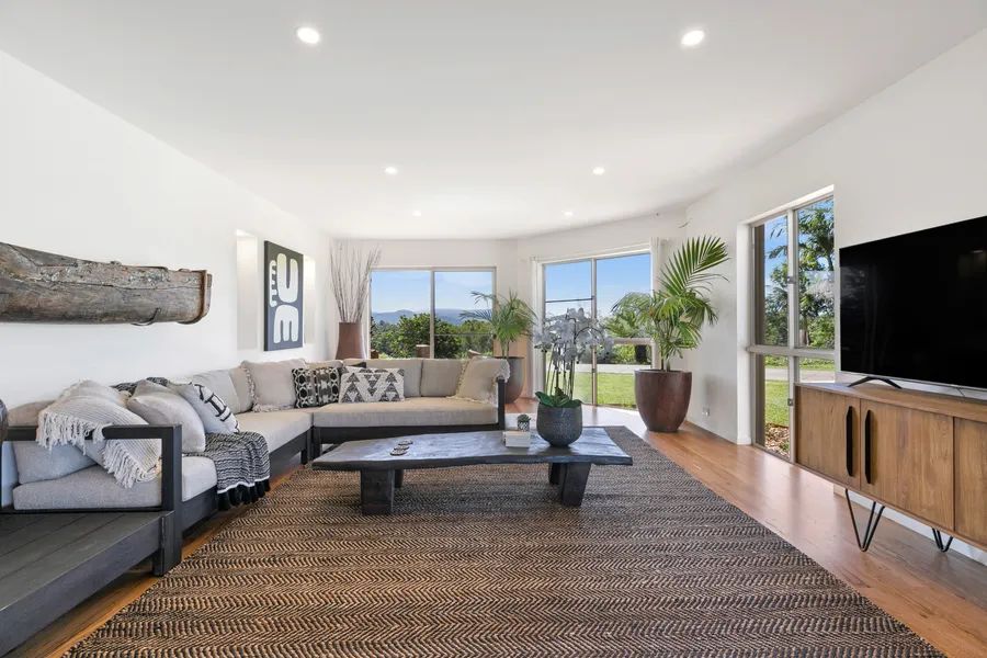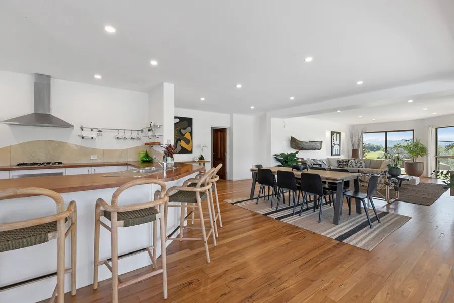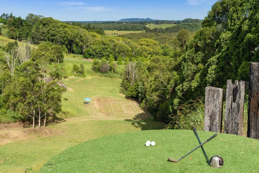A master built home, this 3.91HA (10 acre) property captures magnificent mountain views to the Nightcap Ranges, including Mount Warning, and ocean and lighthouse views to Byron Bay coastline and Julian Rocks.