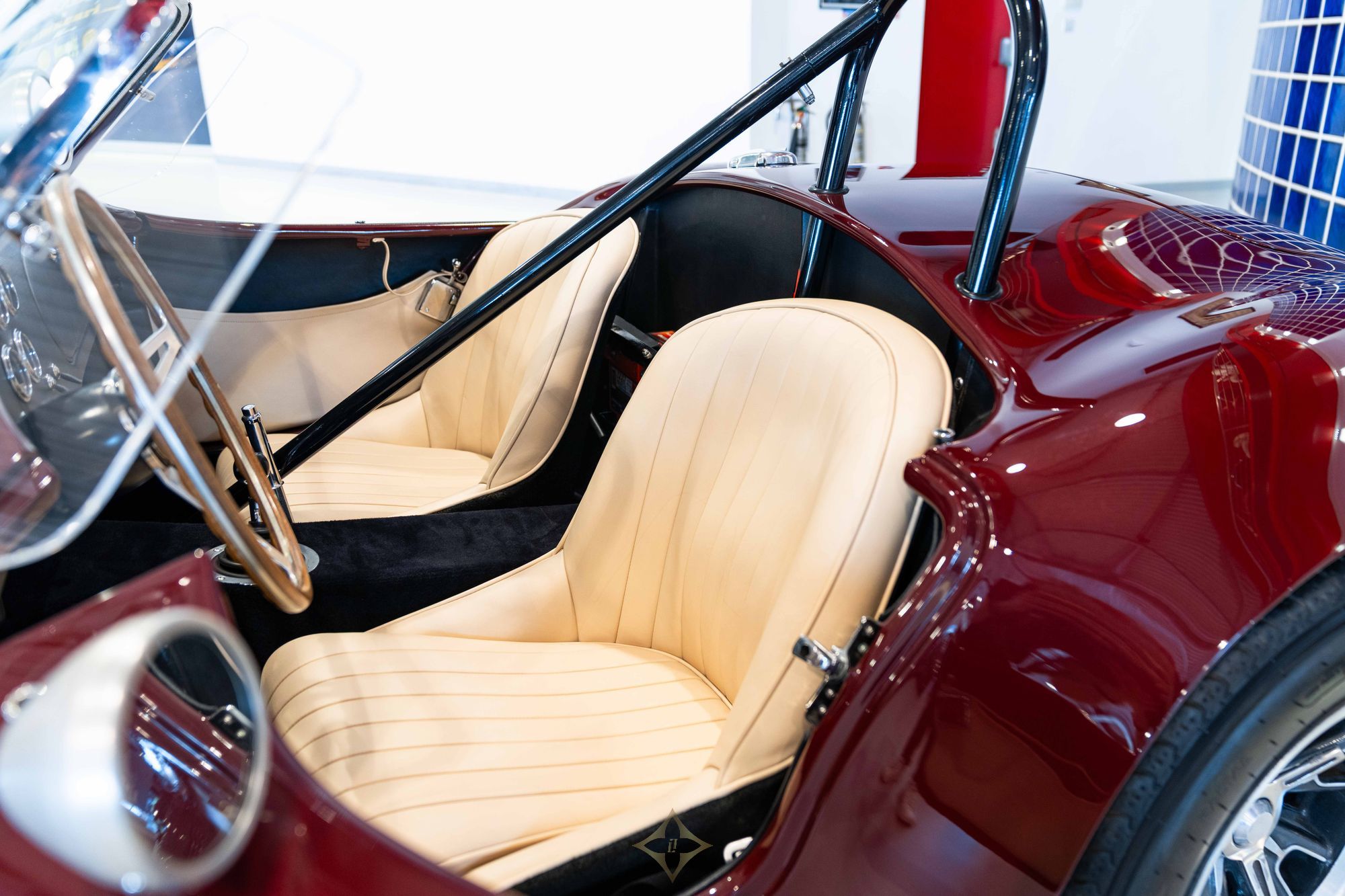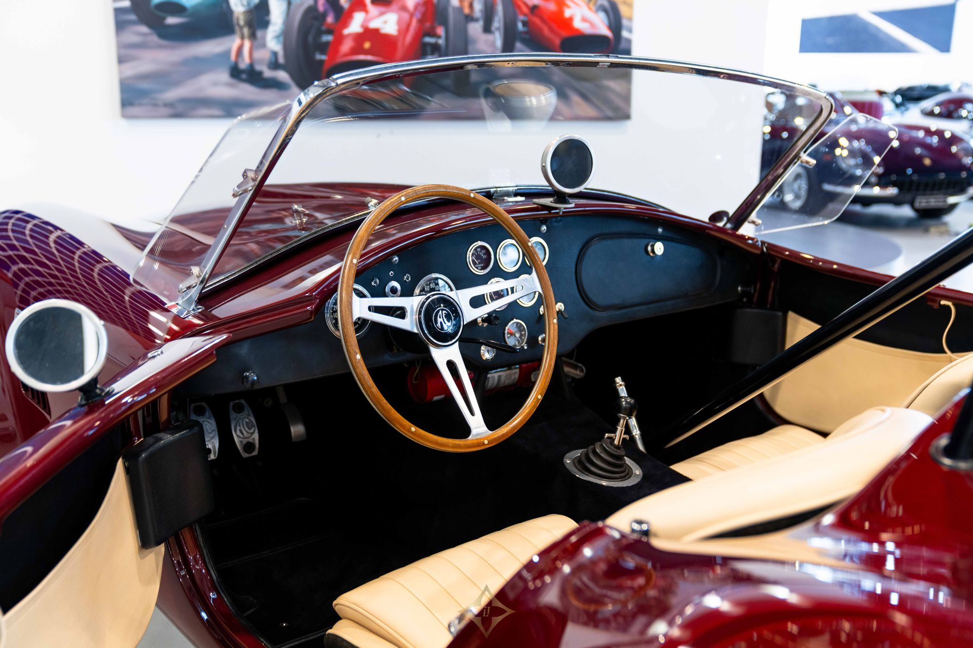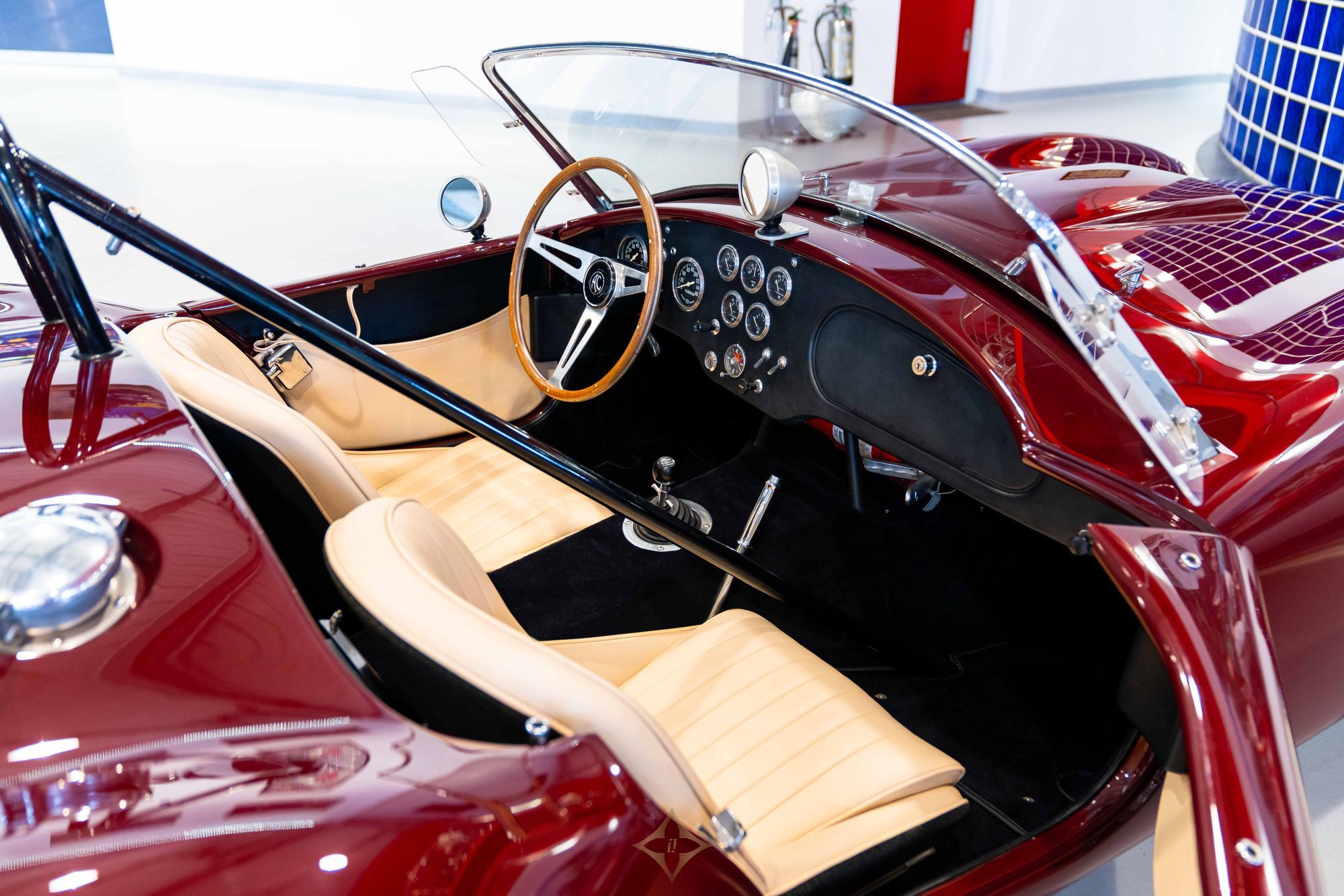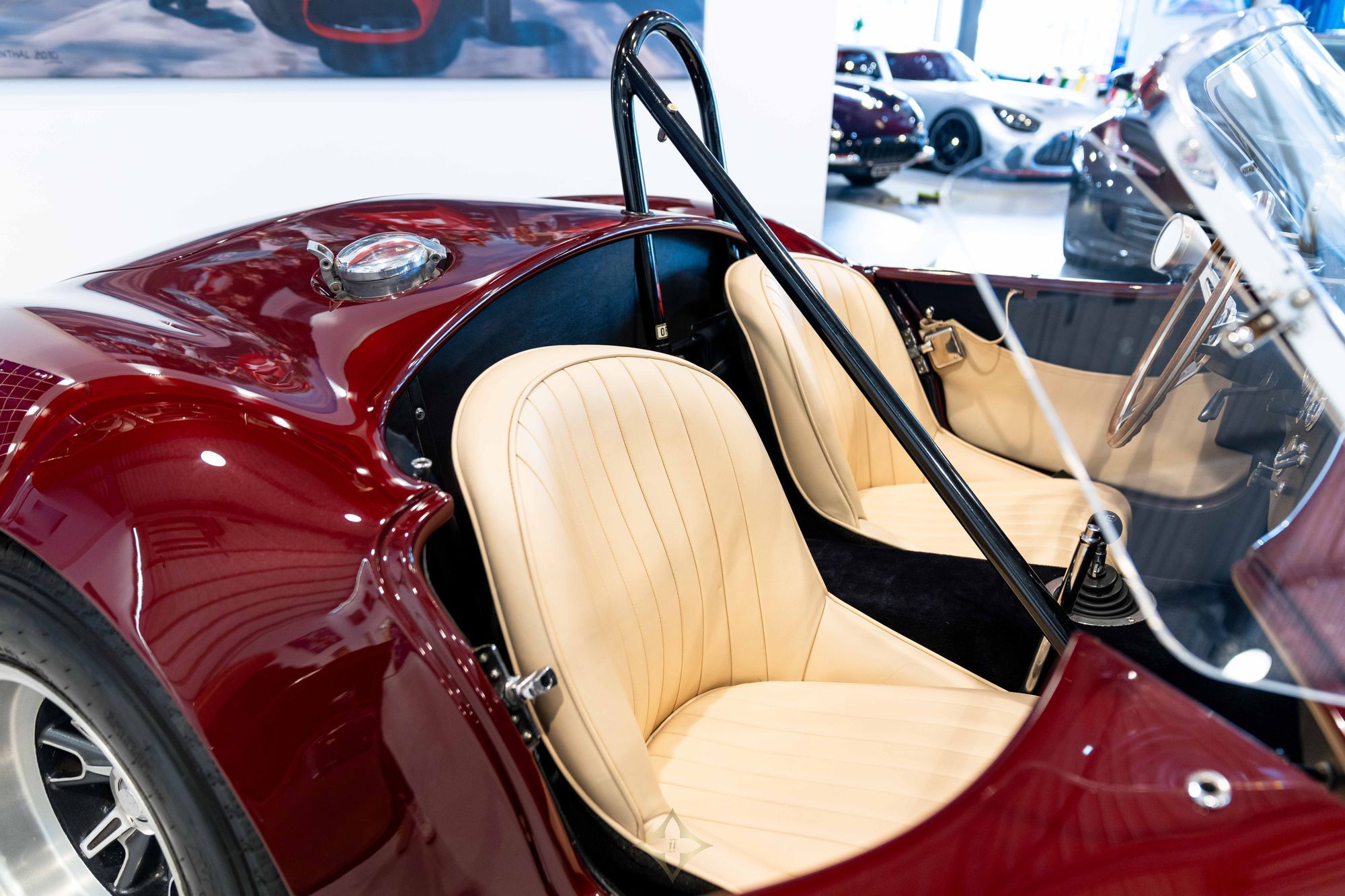 In 2016, the Cobra was acquired by Marc Devis in Belgium before passing shortly thereafter to its current UK-based custodian. Since arriving in the UK, it has seen only limited road use and has been maintained by renowned marque specialist Steve Gilbey Classics. Most recently, the car was returned to its factory-original colour scheme, receiving a comprehensive respray in Rouge Iris and an interior retrim in Beige, expertly carried out by the highly regarded O’Rourke Coachtrimmers.
