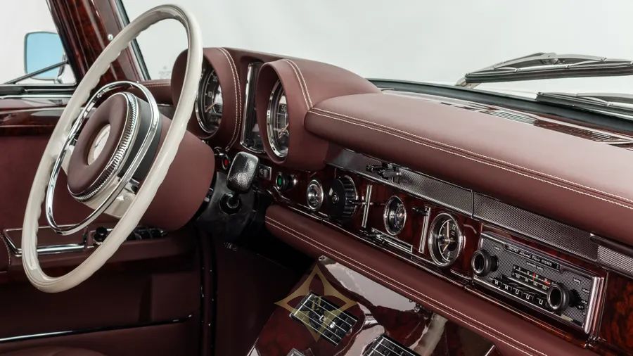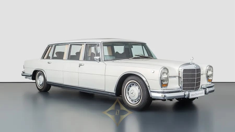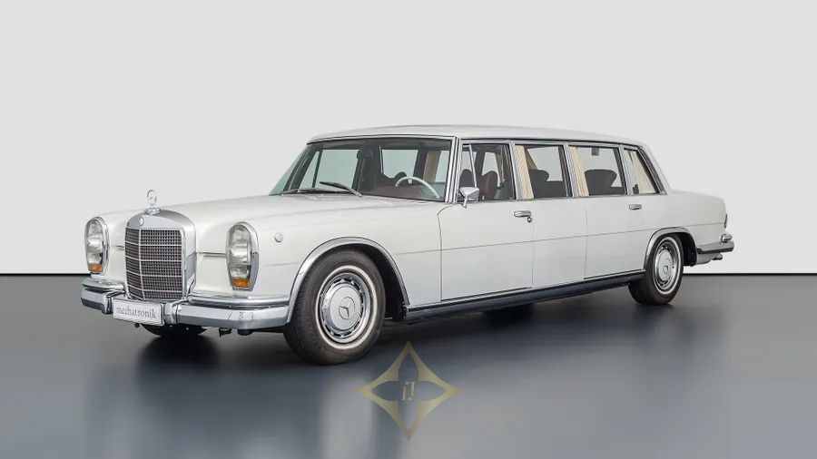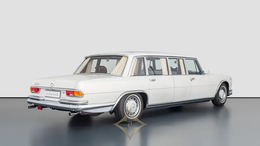 This 600 Pullman was delivered to Lebanon in 1975 in a Mercedes-Benz 172 (anthracite gray metallic) and equipment variant 205 (blue leather). Mercedes-Benz Classic acquired the vehicle in Malaga in February 2007, where it has been since 1997. After purchasing it in 2007, Mercedes-Benz Classic immediately began a restoration that was unique to date. At the customer’s request, the vehicle was completely dismantled and, once the restoration was complete, it was supposed to strike a special balance between the historic Mercedes-Benz 600 Pullman and the comfort of the Maybach series, which was current at the time. The body was completely rebuilt and then painted in mother-of-pearl by Mercedes-Benz in Untertürkheim. The powertrain, i.e. H. The engine, gearbox and axles have been completely overhauled and the chassis has been renewed for the next phase of life of the vehicle. The vehicle received a unique interior that combines the historical with the modern. Various components were specially made or taken from the Maybach series, such as the Maybach glass roof. The outer panorama roof was specially made to the roof line and shape of the 600 Pullman, the inner glass pane comes from the Maybach series. Like the partition between the driver’s seat and the rear seats, this can be transformed into a frosted glass pane at the push of a button. The flat screen was taken from the Mercedes-Benz S-Class W221 Pullman and, thanks to Alpine technology, enables both analog and digital (DVBT) reception. In addition, two separately functioning navigation devices - which also enable precise location determination in the rear area - were installed. There is also a laptop interface in the center console and a DVD player. The entire entertainment equipment is controlled via a read-out data bus in the trunk of the vehicle. Two original, hydraulically adjustable seats, which are optically designed in the Maybach series, ensure comfort in the rear. The original cool box as well as the folding tables and the champagne flute holders from Maybach are located between the seats. For special occasions, a trip with six people is possible thanks to two additional seats. Illuminated cosmetic mirrors for the driver and front passenger were installed in the driver’s area. The air conditioning in the vehicle has been optimized so that even driving in hot countries is possible. The intercom from the Mercedes-Benz S-Class W221 Pullman was installed for communication between driver and passenger. A reversing camera and a front camera were installed to make parking this prestigious vehicle easier. The piping on the door sills was set with Swarovski diamonds on both the front and back. The door entry was decorated with illuminated Mercedes-Benz lettering made of stainless steel panels. The vehicle has standard brackets on the front fenders for representation rides. There is no comparable vehicle that has been restored by Mercedes-Benz with such effort and precision. Our sales staff will be happy to answer any questions you may have at any time. Please note that vehicle inspections are generally only possible by prior appointment.