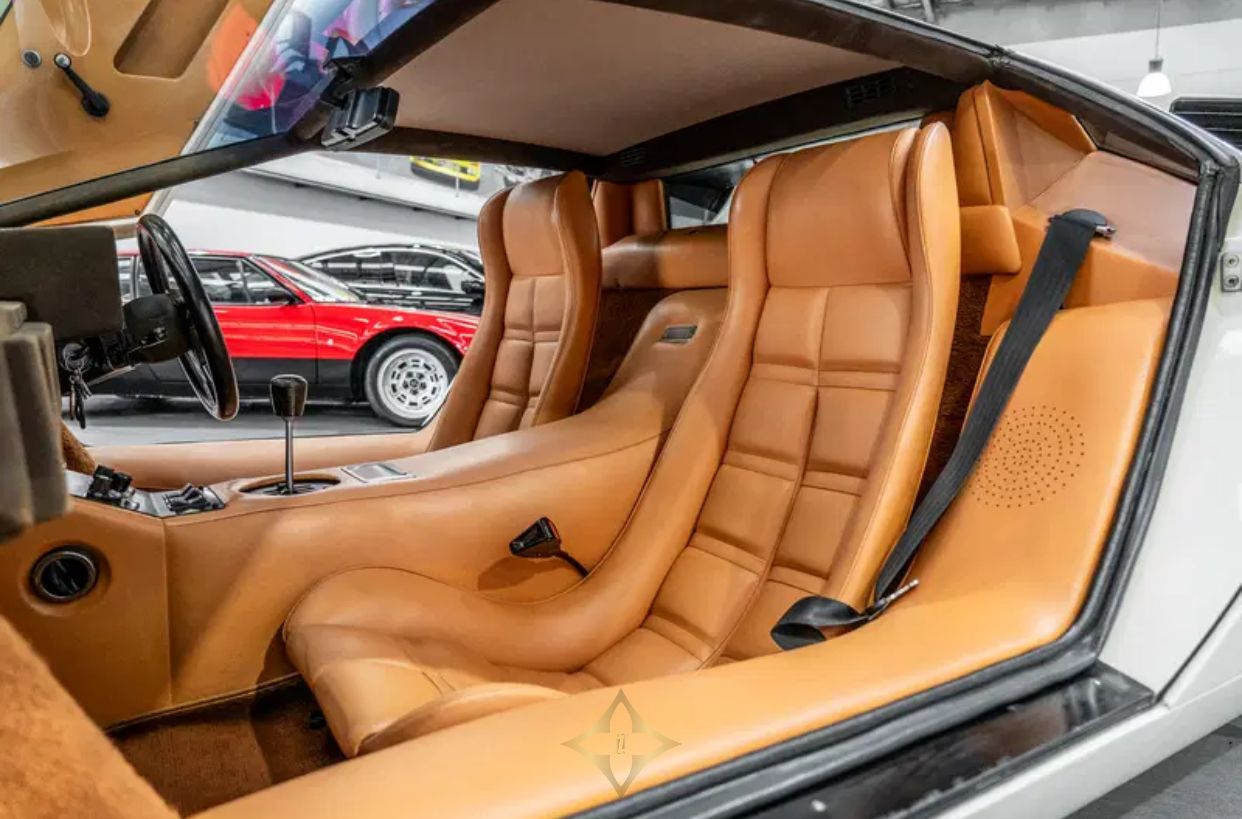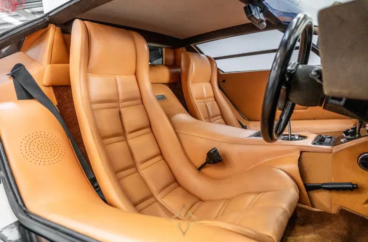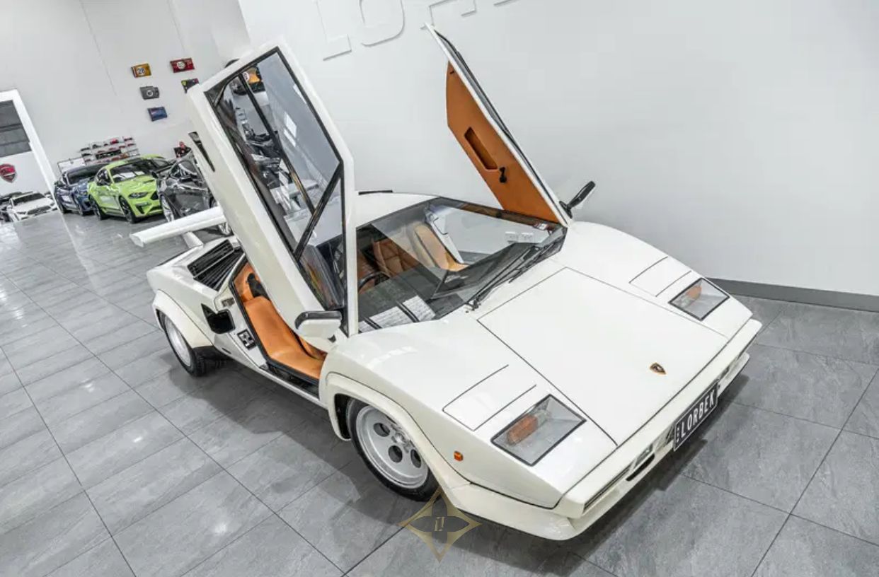 At some time between 1985 and 1993 the colour of the Countach changed to a stunning White pearlescent and retained the pristine perfect Original Senape Tan leather interior. This Countach is a truly collectable supercar and the most recognised 80s poster car, idolised by everybody and now enjoys a new generation of automotive art appreciation.