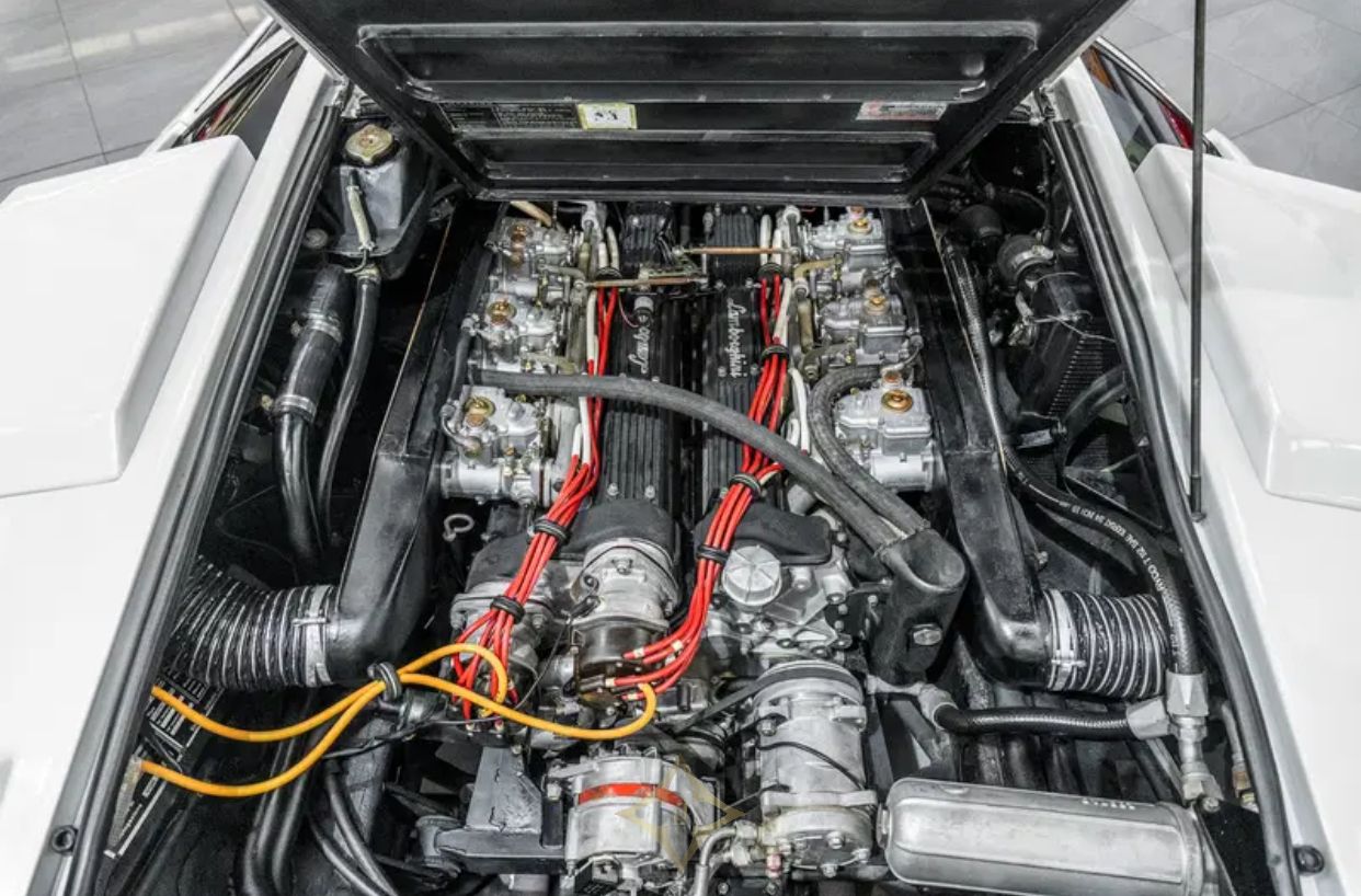 Under the hood, the Countach LP400 S boasts a 4.0-liter V12 engine, delivering around 355 horsepower. This powerful engine, paired with a five-speed manual transmission, enables the car to reach top speeds of over 180 mph, making it one of the fastest cars of its era. The performance of the LP400 S is complemented by its lightweight tubular space frame and aluminum body panels, which contribute to its impressive speed and agility.