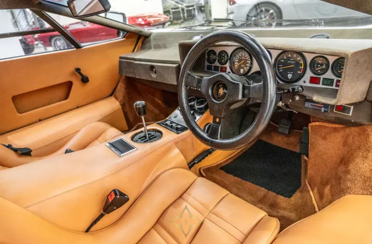 This 1981 Lamborghini Countach LP400 S left the Lamborghini Santa Agata factory on November 5th 1980 and arrived in Melbourne in the original colour of Rame Colorado and Senape tan colour interior, the car was ordered in February 1979 with the following options, lowered seats for both driver and passenger, forward pedals, fitted with a rear spoiler and specially ordered with factory gold badges.