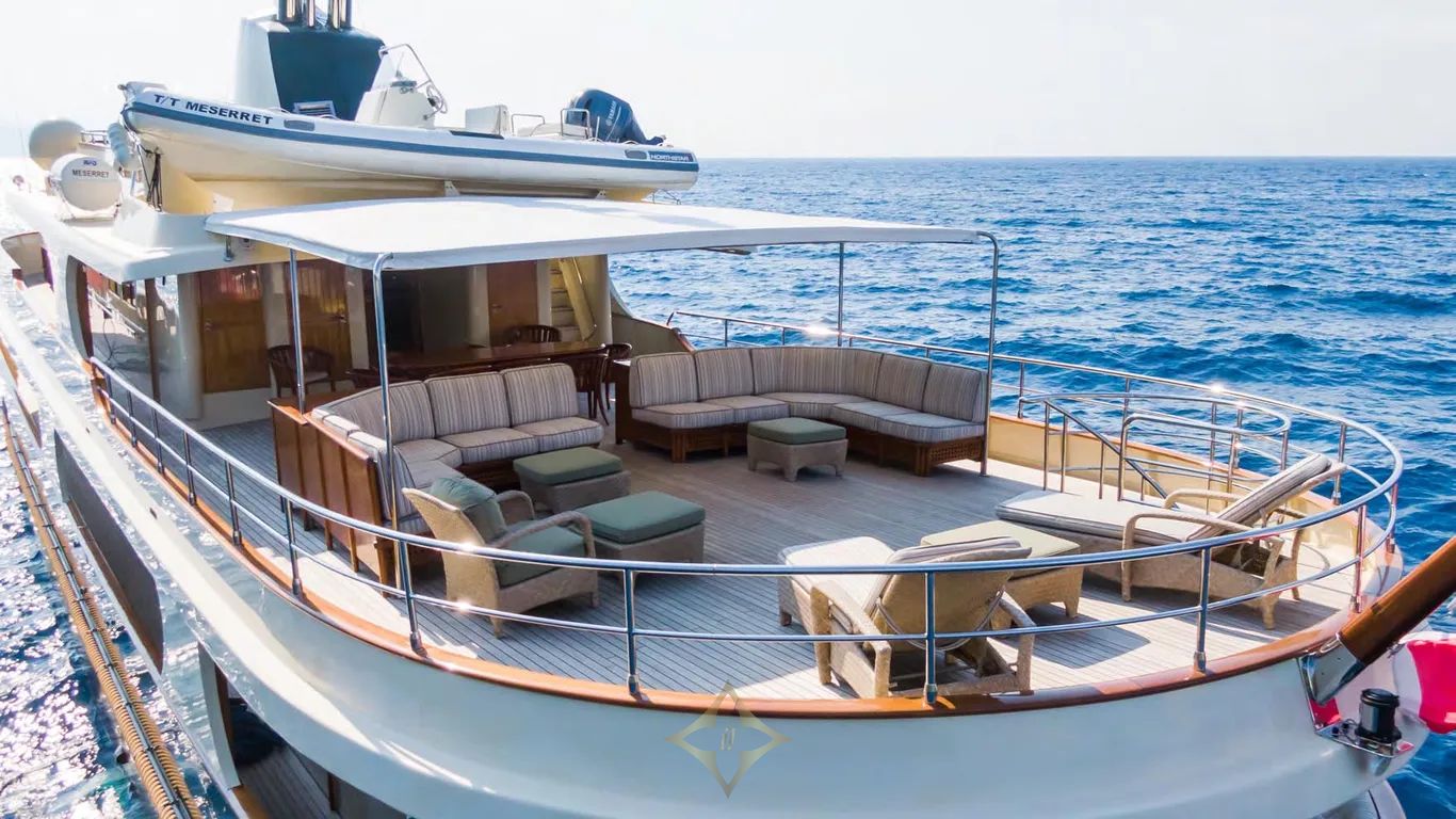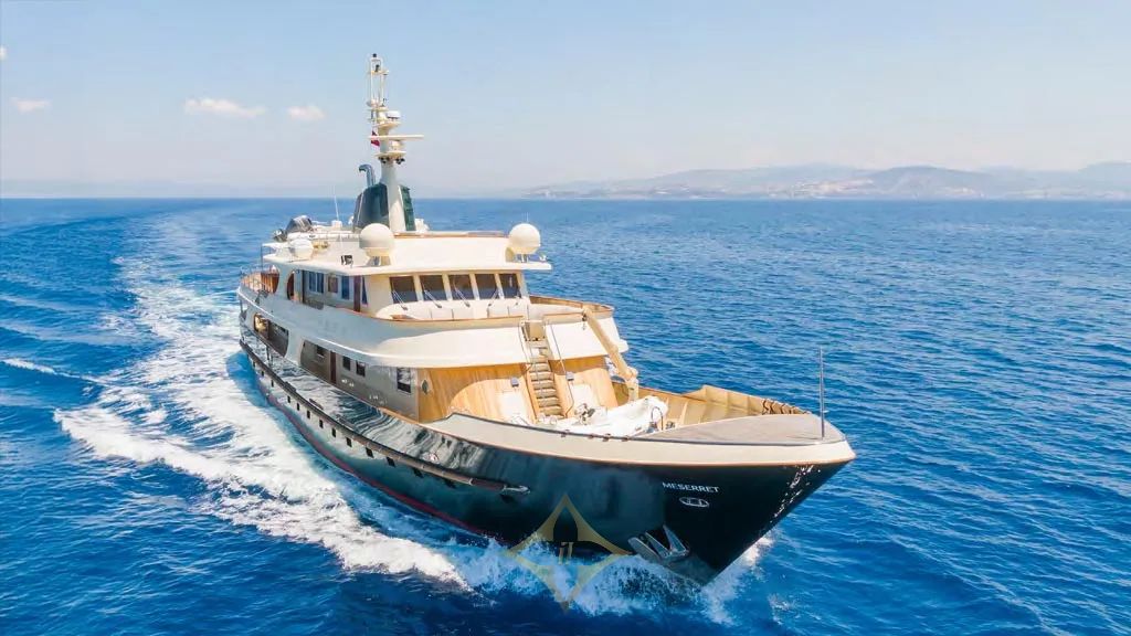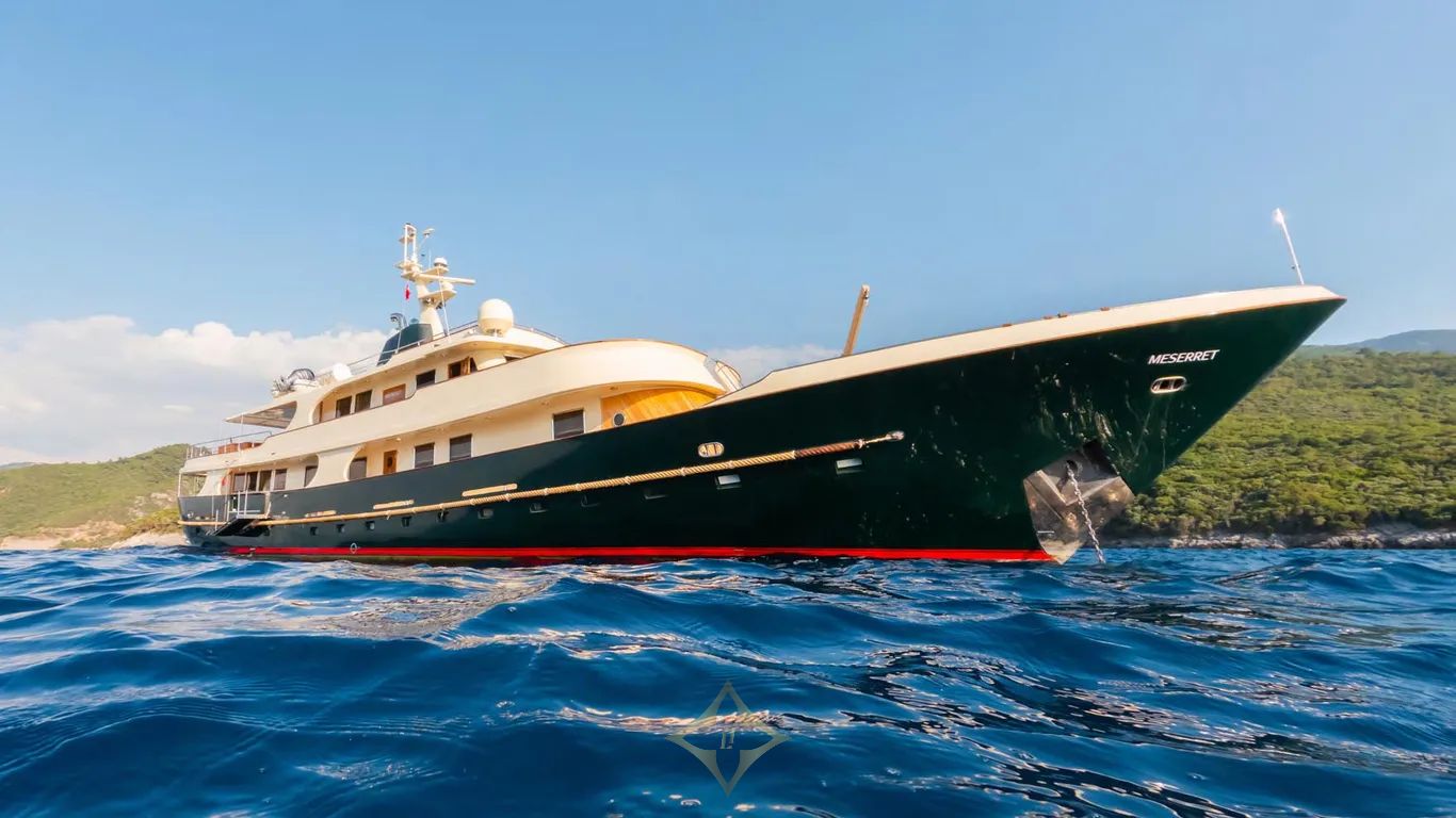MESERRET for sale Astilleros Armón PRICE: €3,400,000 LENGTH 39.25 m BUILD YEAR 1981 TOP SPEED 14 kn BEAM 7.57 m GT 289 GUESTS 12 CREW 7 MESERRET is a graceful, all-steel canoe stern motor yacht that captures the timeless charm of a gentleman’s world cruiser. Fully rebuilt in 2002 and extensively refitted in 2020, she stands as a capable oceangoing vessel, Lloyd’s classed, MCA compliant and charter-ready under the Maltese flag. MESERRET’s emerald-green hull and classic canoe stern echo the golden age of seafaring. On the main deck, built-in sofas hug the curve of the stern, while loose furniture across all decks allows for flexible outdoor arrangements. The upper deck features a U-shaped lounge and a dining area beneath a large awning, offering a shaded retreat. Above, sun pads flank a Jacuzzi and wrap around the mast base. Wide side decks and side-boarding access to starboard ensure ease of movement and embarkation. Rich teak panelling paired with light fabrics and large main-deck windows creates a bright, inviting atmosphere. A 2002 rebuild and 2020 refit deliver a seamless blend of classic woodwork and contemporary amenities. High-quality joinery, custom upholstery and TVs are found throughout. MESERRET accommodates 12 guests in six en suite cabins, including a master suite and a VIP on the main deck, a second VIP located on the lower deck and three additional twin cabins. Each cabin features warm teak panelling, with detailed joinery and classic finishing touches throughout. A comprehensive two-year rebuild between 2001 and 2002 under Studio Scanu delivered an interior and exterior overhaul, with new teak panelling throughout. In 2020, MESERRET underwent a major refit that added zero-speed stabilisers, upgraded AV and electrical systems, enhanced LED lighting and an enlarged main-deck bathroom. SPECIFICATIONS OVERVIEW Name: MESERRET Yacht Type: Motor Yacht Builder: Astilleros Armón Refits: 2020-01-01 DIMENSIONS Length Overall: 39.25 metres Length at Waterline: 37.25 metres Beam: 7.57 metres Max Draught: 2.81 metres Gross Tonnage: 289 Displacement Tonnage: 350 CONSTRUCTION Builder: Astilleros Armón Year of Build: 1981 Hull Type: Full Displacement Number of Decks: 3 Classification: LR PERFORMANCE & CAPACITIES Max Speed: 14 kn Cruising Speed: 11 kn Fuel Capacity: 86000 litres Water Capacity: 22000 litres Range: 5000 nm ——— Camper & Nicholsons International Monaco Office Gildo Pastor Center, 7 Rue Gabian, MC 98000 Monaco Phone: +377 97 97 77 00 Email: social@camperandnicholsons.com CONTACT TEAM • Fernando Nicholson (SENIOR SALES BROKER) Miami Office Sales brokerage Department Office: +1 305 604 9191 Mobile: +13057763096