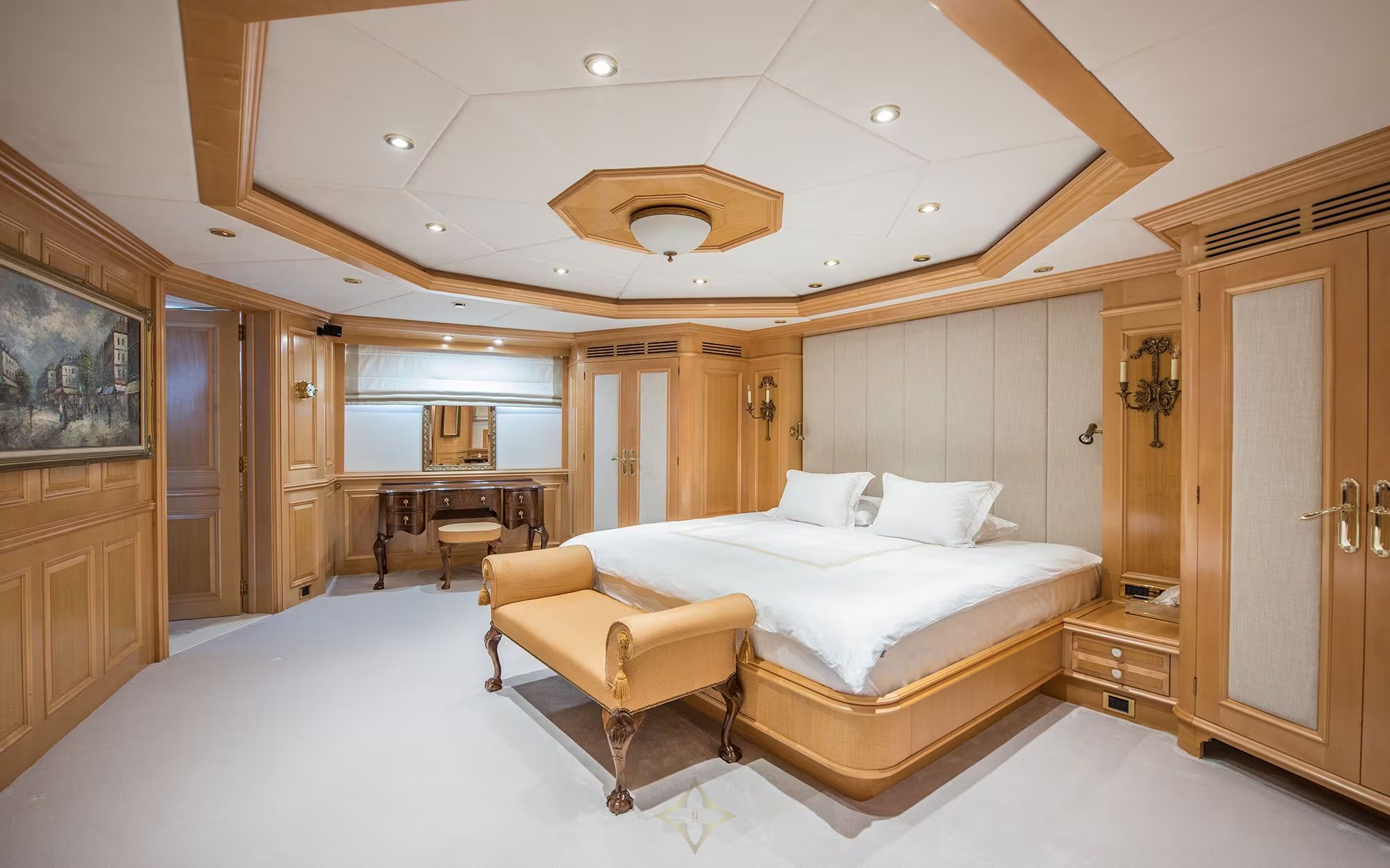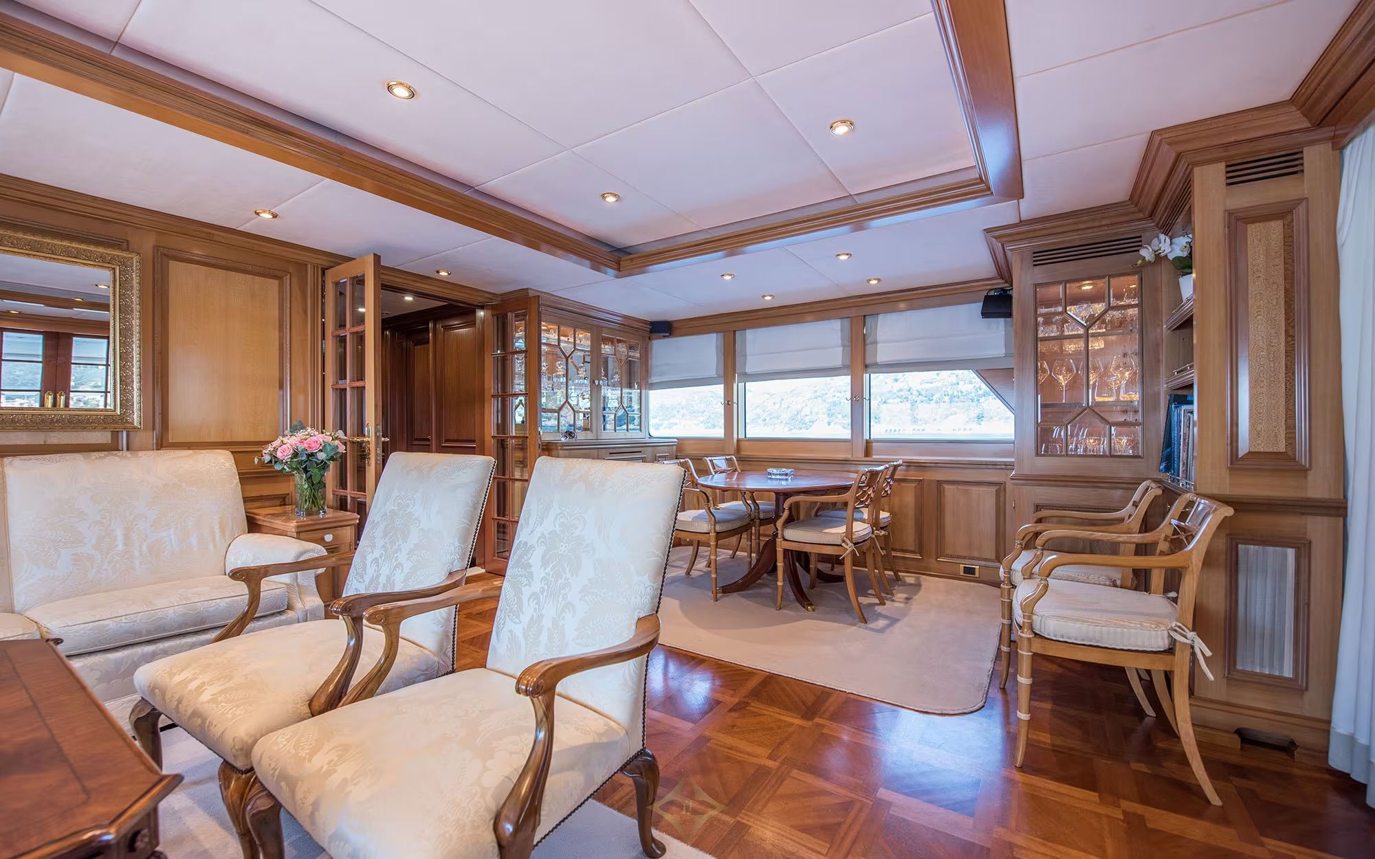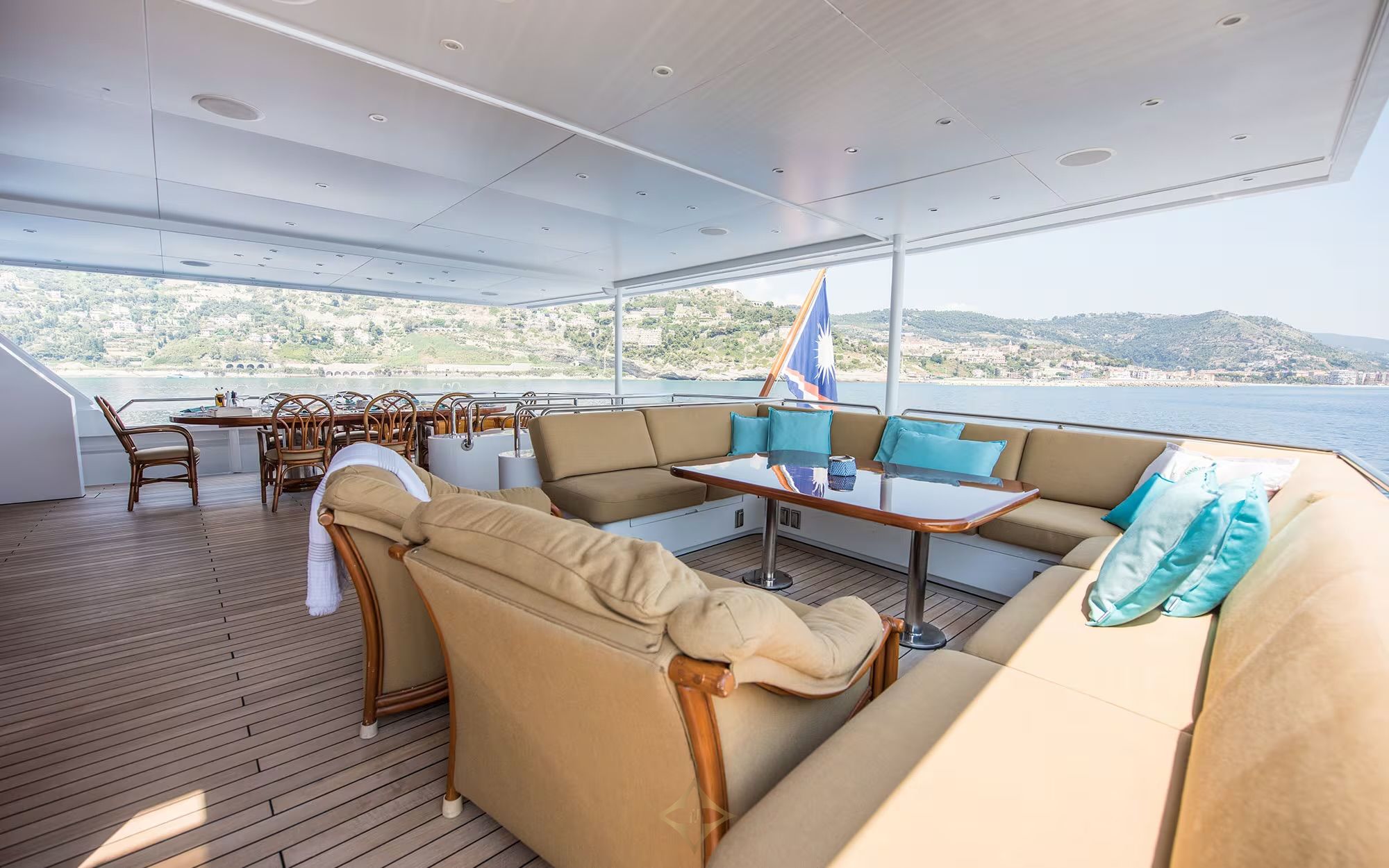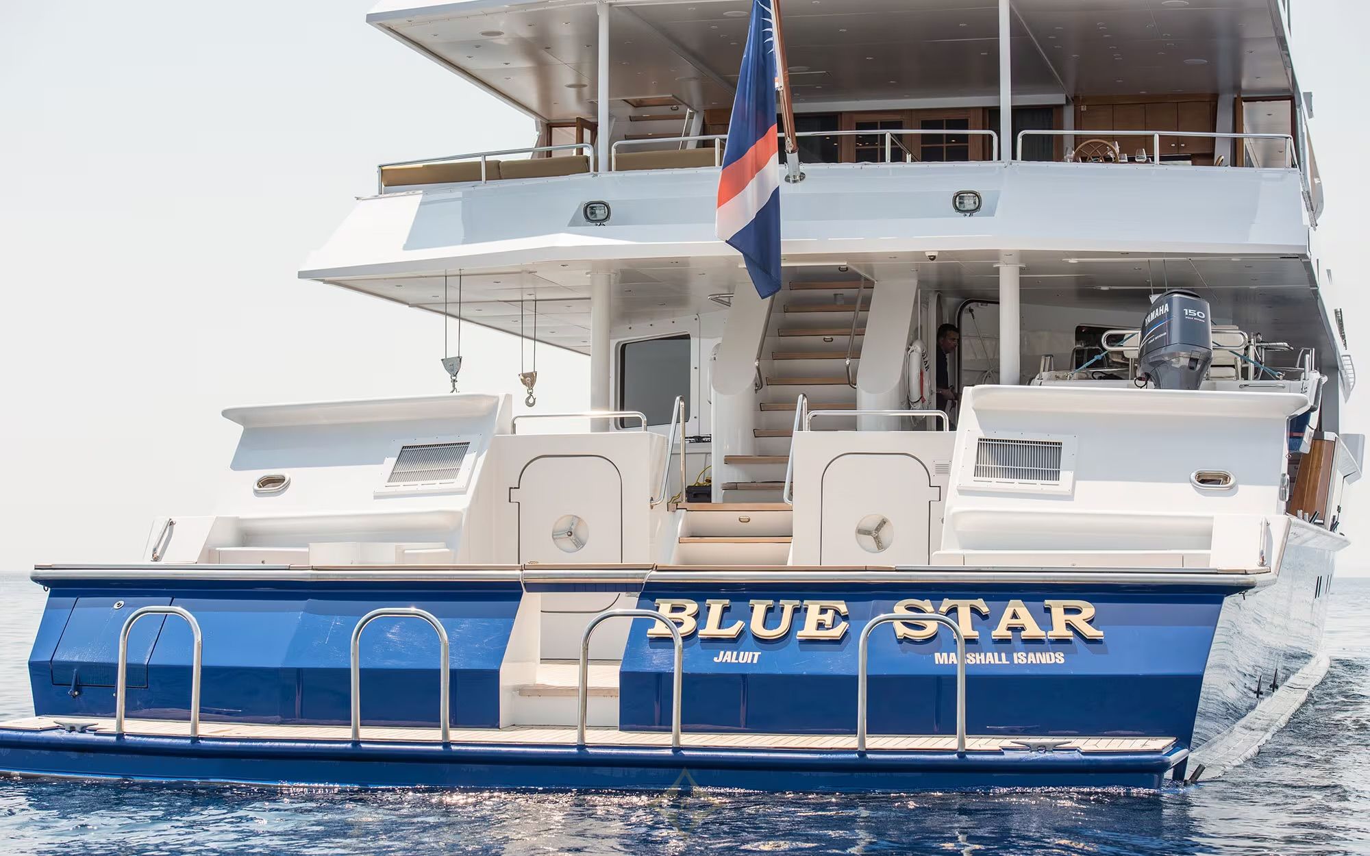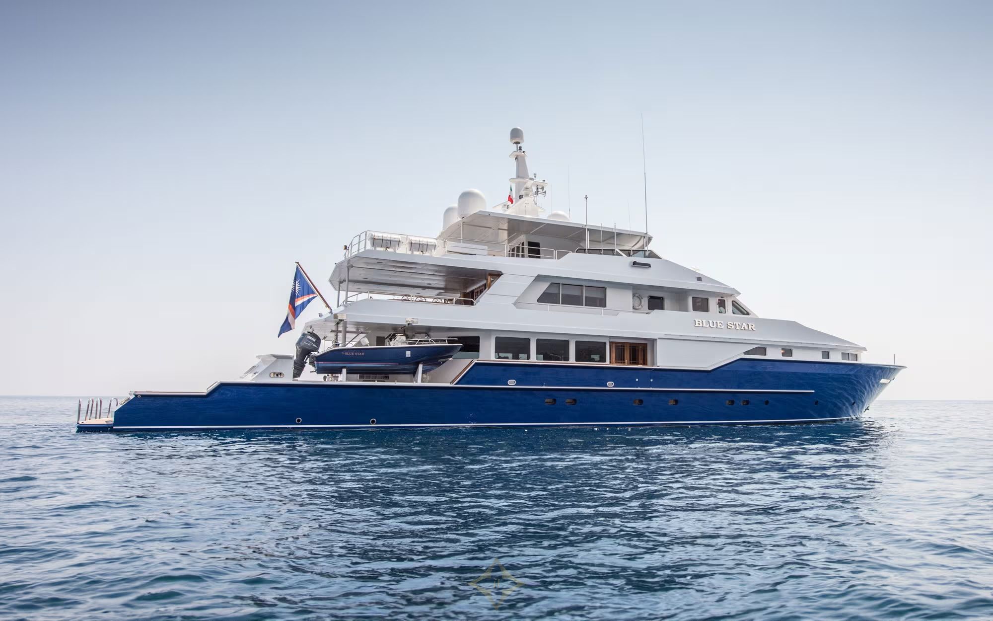 BLUE STAR AVAILABLE FOR SALE Price: EUR 7,950,000 (Ex VAT) Guests: 11 Length (m): 45 Year Built: 1993 Staterooms: 5 Builder: Keith Marine Crusing Speed: 10 knots Top Speed: 12 knots Last Refit: 2023 Location: West Mediterranean Keith Marine's 45m 'go-anywhere' explorer motor yacht. BLUE STAR has recently gone through extensive updates and refits. BLUE STAR has travelled extensively throughout Alaska, the Caribbean, Mediterranean, Far East, remote areas of the Pacific and one circumnavigation, proving her superior ability as a very seaworthy and comfortable, long range cruising yacht. BLUE STAR features a traditional Donald Starkey designed interior with various exotic woods and marble, and accommodates up to 11 guests in 5 staterooms. An ideal yacht for a buyer looking for a dependable, long range yacht that has proven global cruising capability. BLUE STAR is in excellent condition ready for new Owner. THE BEST OF BLUE STAR Perfect condition - extensive refit completed in 2023. 3,500 nautical mile range. Full displacement hull provides very comfortable cruising. FACILITIES Gym / Exercise Equipment Scuba Diving TENDERS & TOYS 18-foot Dauntless Boston Whaler with 150hp Yamaha 18-foot Aquascan RIB with 115hp Yamaha ACCOMMODATION Traditional English interior with Mahogany flooring, mix of Mahogany, Sugar Maple, and lacewood throughout. MASTER STATEROOM: The full beam master stateroom offers a private and nicely appointed owners study in addition to a full walk in closet and built in wardrobe bureaus on both port and starboard. GUEST STATEROOMS: The four guest stateroom consist of one double stateroom, two twin staterooms, and one twin with an additional Pullman. Each with it's own en suite head, shower and bathtub. OTHER SPECIFICATIONS Length: 45m/147' Gross Tonnage: 430 Beam: 9m/30'6" Max. Draught: 2.72m/8'11" Hull construction: Steel Superstructure construction: Steel Exterior Designer: Fry Associates Interior Designer: Donald Starkey Designs Naval Architect: Fry Associates Engines: 2 x CAT 3508 855 HP Generators: 2 x Northern Lights (John Deere) 130 Kw @1800 RPM Range: 5400nm @ 10kn Flag: Marshall Islands Classification Society: American Bureau of Shipping (ABS) ——— Ocean Independence ZÜRICH HEAD OFFICE Ocean Independence AG