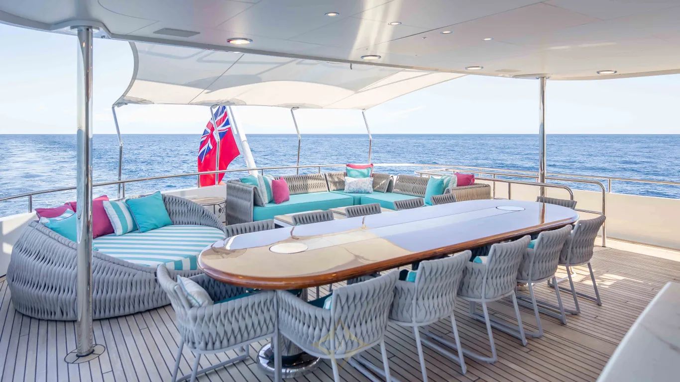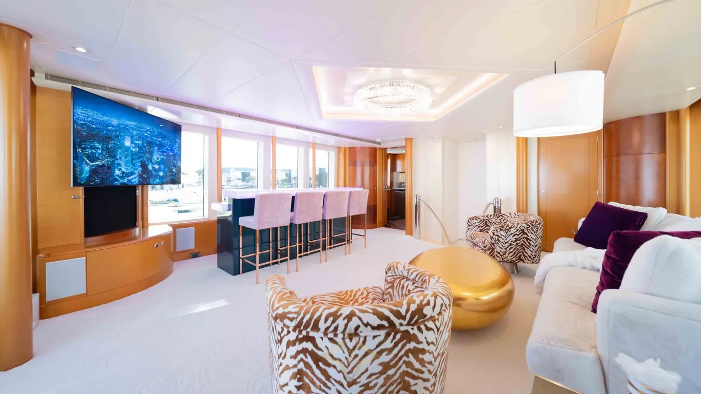 TASIA also boasts a range of amenities, from a well-equipped sundeck with a Jacuzzi to generous spaces for watersports equipment and toys, making her equally suitable for private retreats or entertaining.