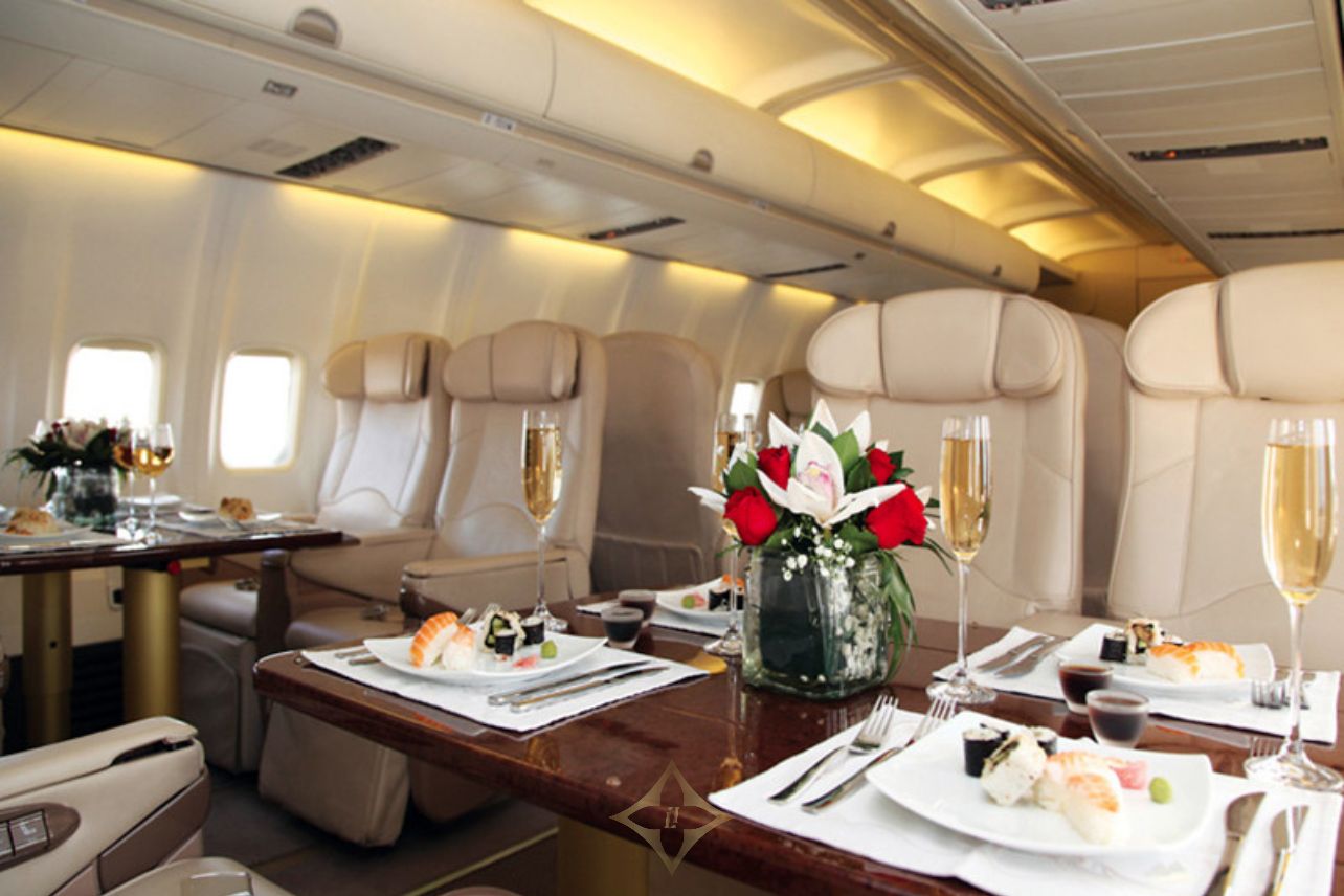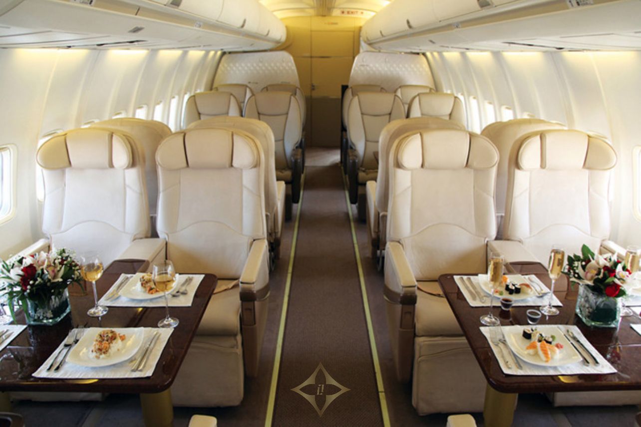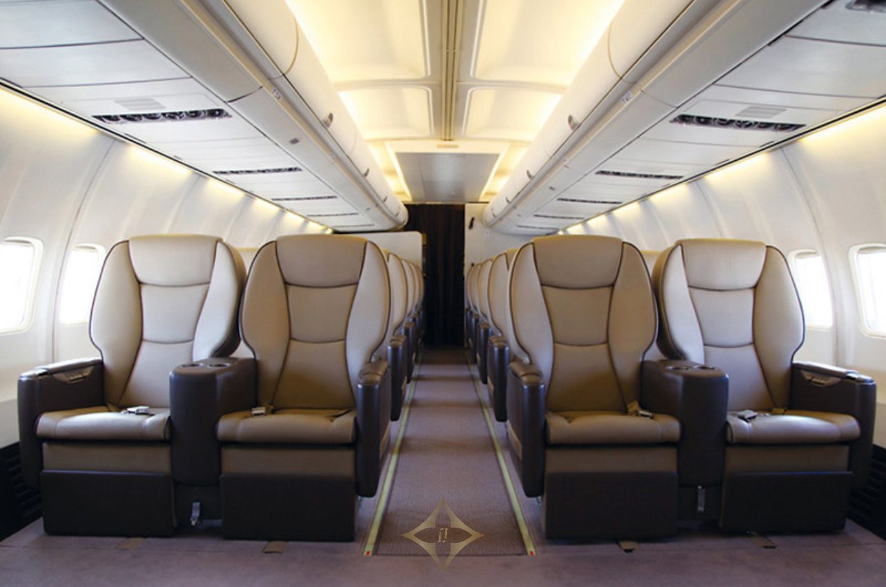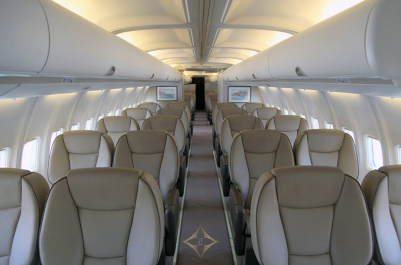 • Sixty-two (62) club class seating configuration with 110 volt power outlets.