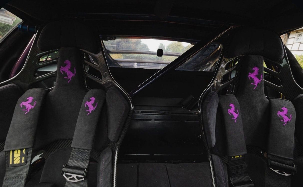 • The interior: The cabin has been reborn in perfection with luxurious Alcantara and a refined, purple seam. Even the roll cage was painted in Viola Hong Kong, which combines aesthetics and uncompromising character.