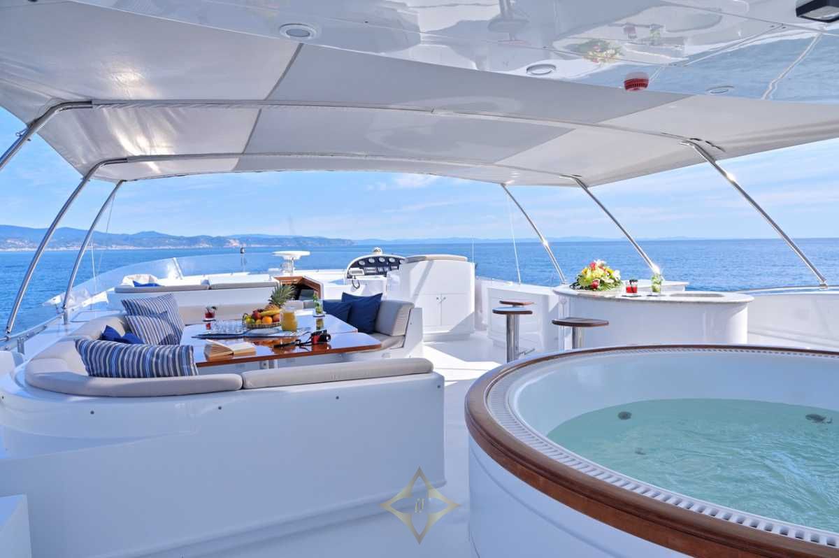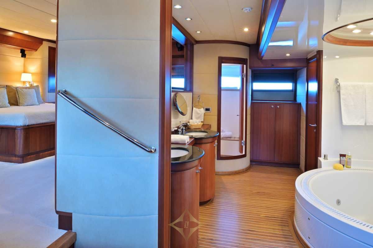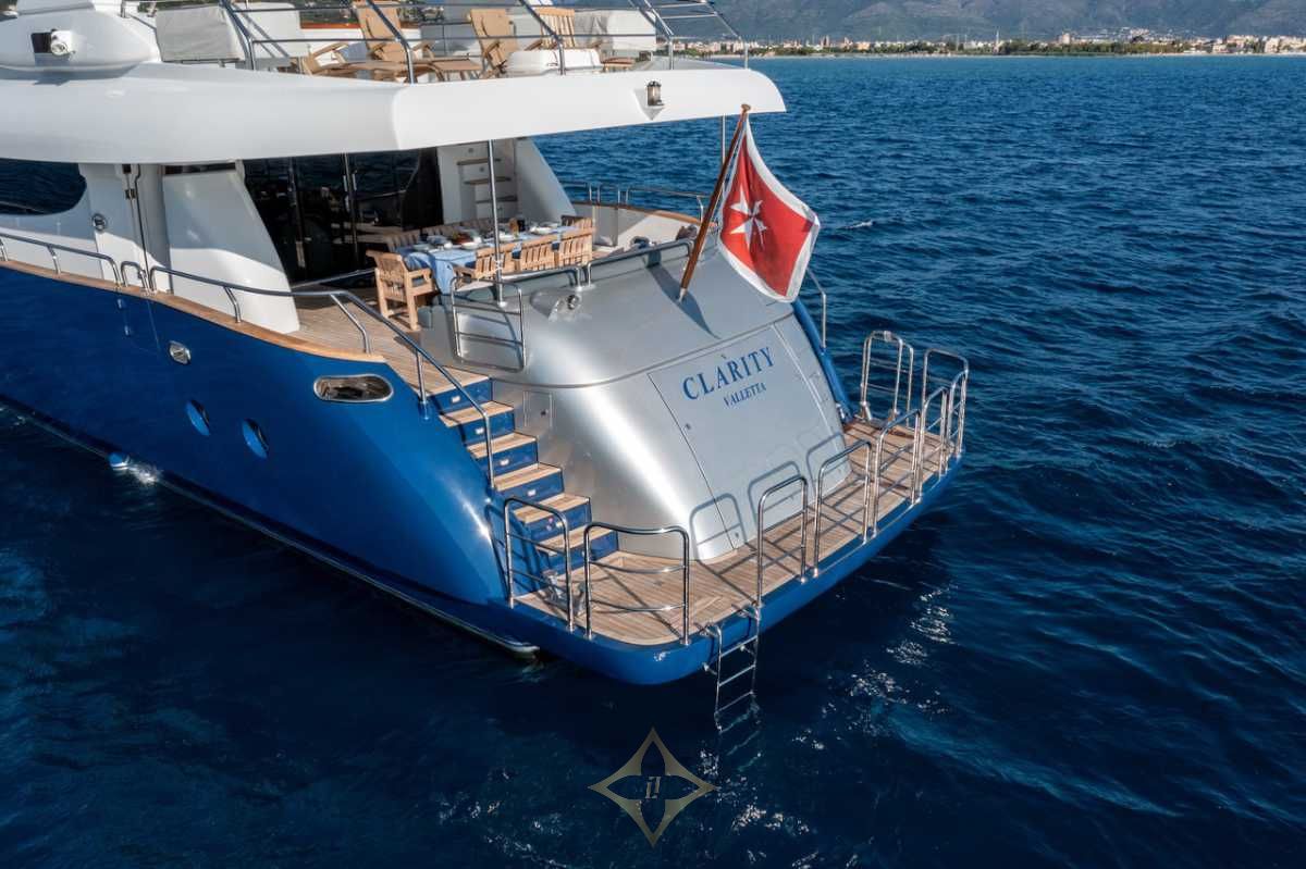 The yacht CLARITY has a lot of volume for a 32 m yacht, with a huge master cabin. Also great storage areas.