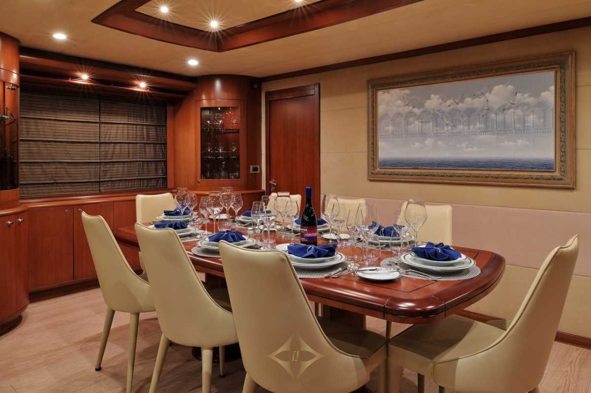 The engine room has also benefited from a lot of investment: main engines completely rebuilt (W6). she got new generators and electric fin stabilisers, which also work at anchor.