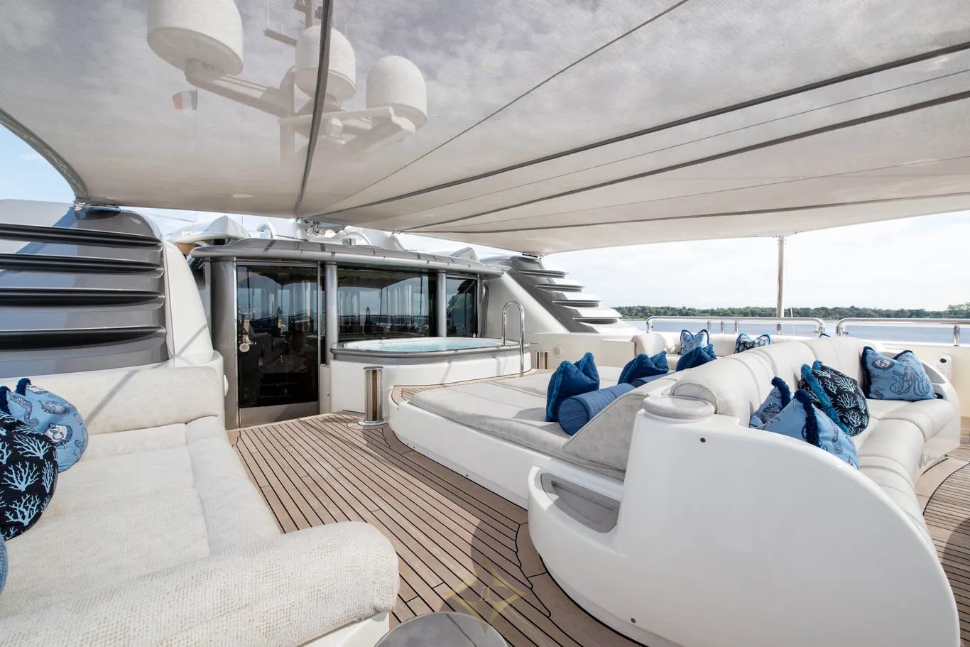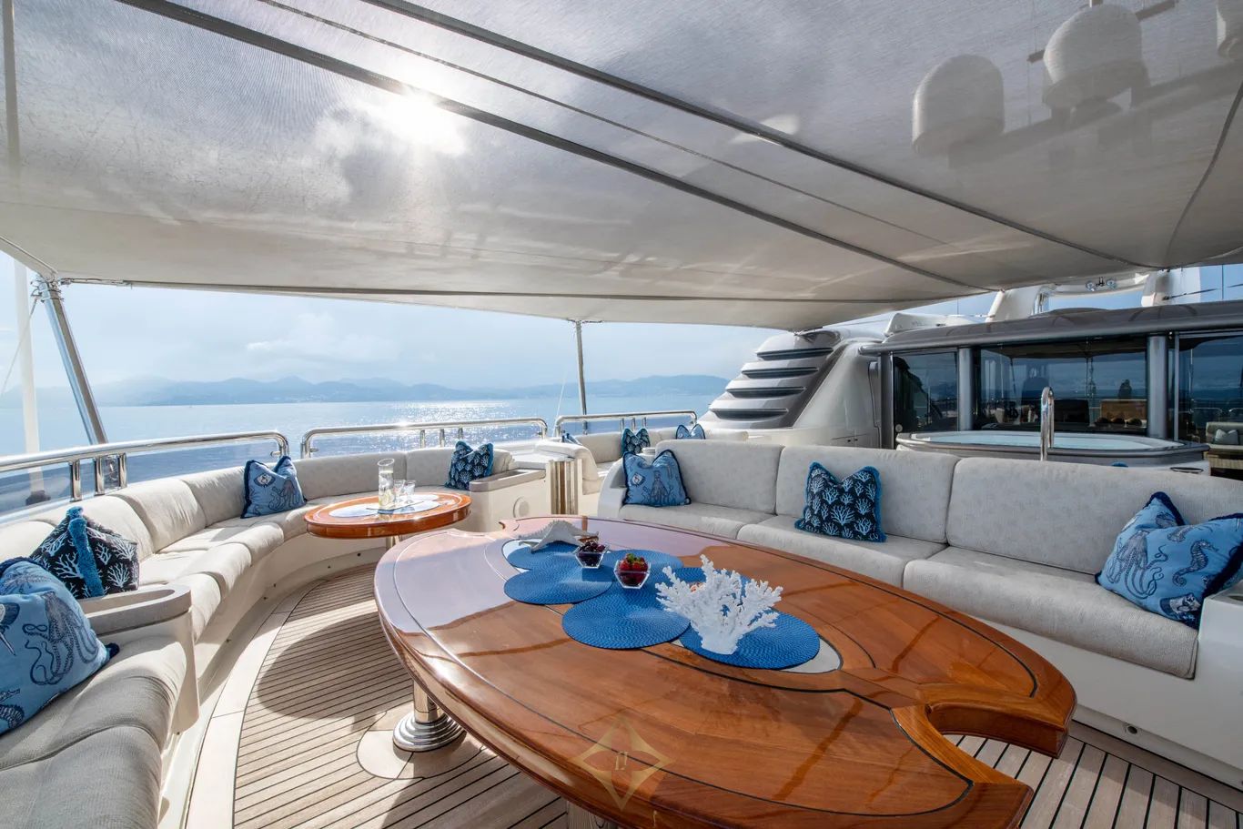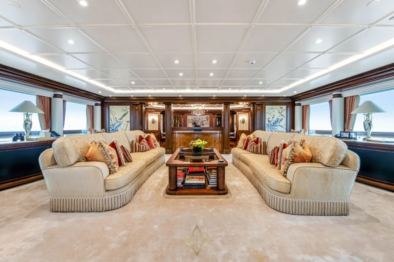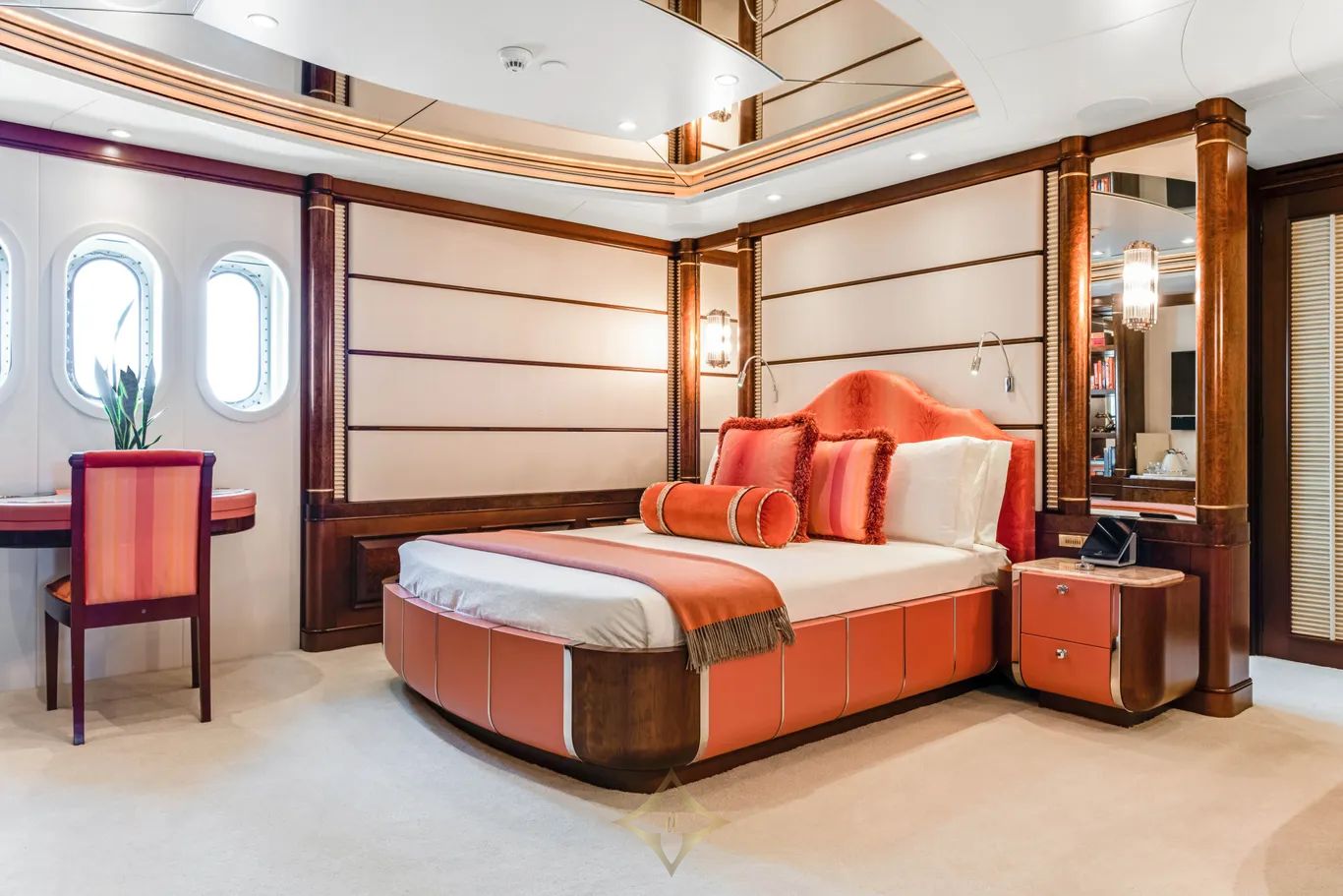 Stepping aboard, the first impression is her extraordinary sense of space compared to other yachts her size. Designed with comfort in mind, every area feels expansive and indulgent, with unobstructed views of the ocean. Privacy is number one priority and separate crew entrances ensure discreet service at all times. One of the yacht's highlights is her full-beam, two-level master suite. Flooded with natural light from its overhead skylight, this suite is a true standout of the yacht.
