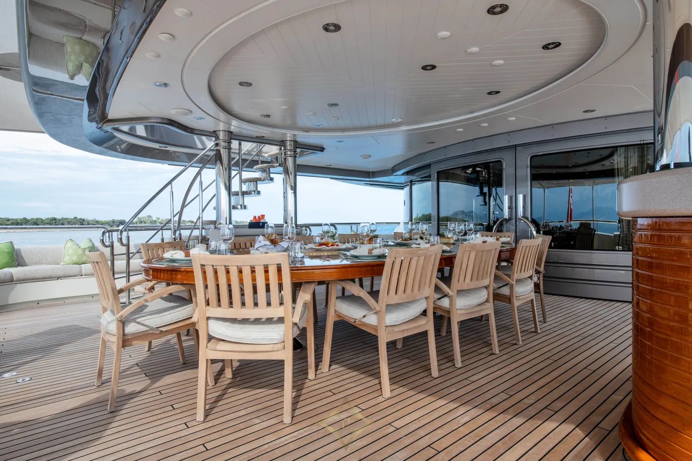 On deck, Calypso offers numerous spaces for dining, entertainment and unwinding. From a sun deck gym to the spacious, sheltered dining area on the bridge deck and the open-air cinema and well-stocked toybox, guests are spoiled for choice.