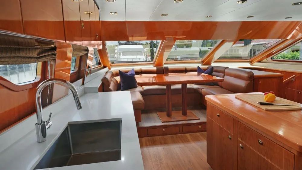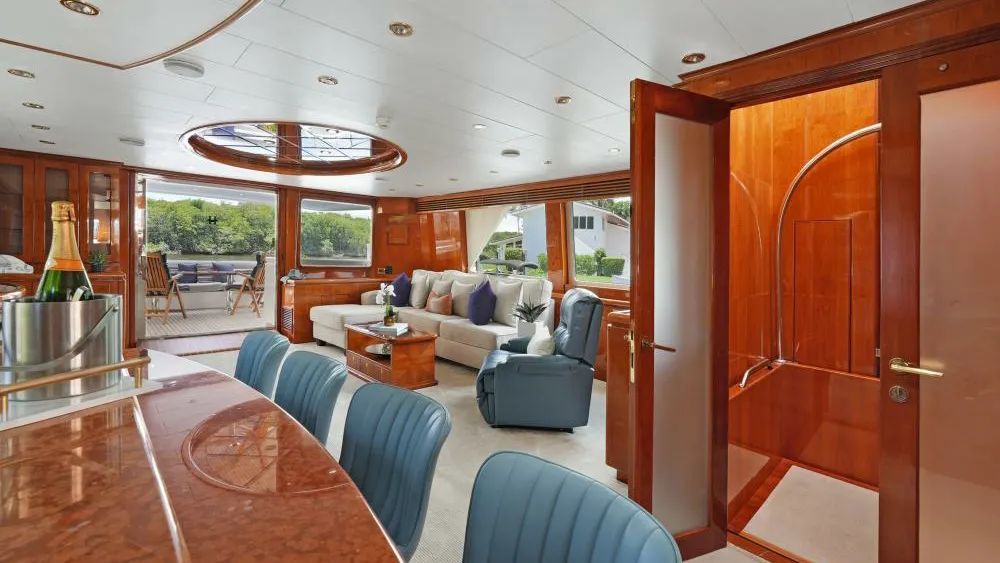 SUE CAROLYN is a standout example of Hargrave’s custom craftsmanship, offered for sale following a comprehensive refit led by an experienced owner-captain team. Originally built for a client with specific accessibility needs, this motor yacht integrates practical modifications offering a level of convenience rarely seen in this size range.