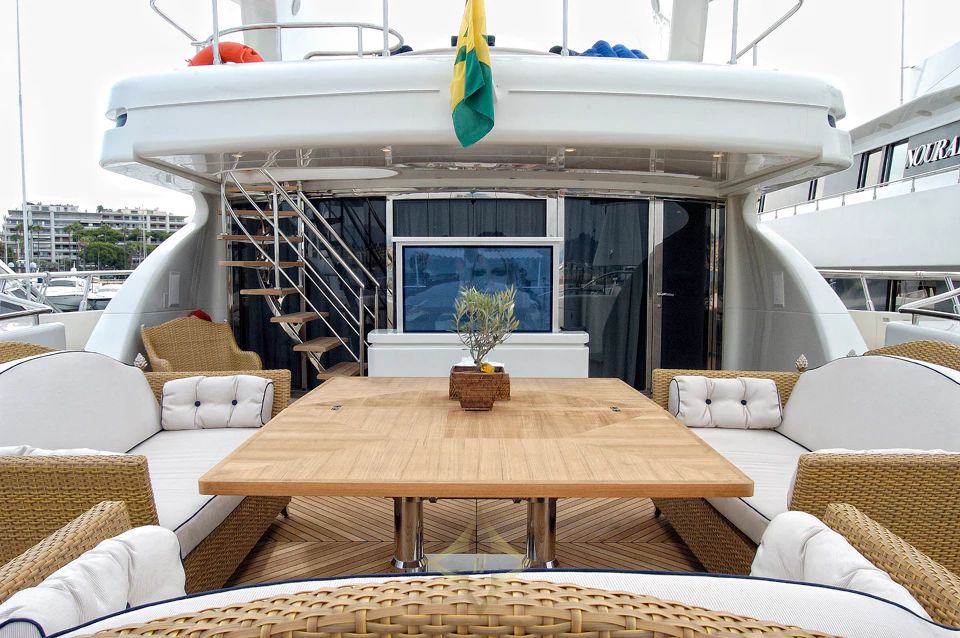 The interior, designed by Cristiano Gatto, boasts contemporary sophistication and generous guest areas. Her main salon and formal dining space are bathed in natural light, ideal for entertaining or relaxing in comfort. With 319 GT of internal volume, M.J. TAKNM provides spacious accommodation and crew facilities rarely found in this size range.