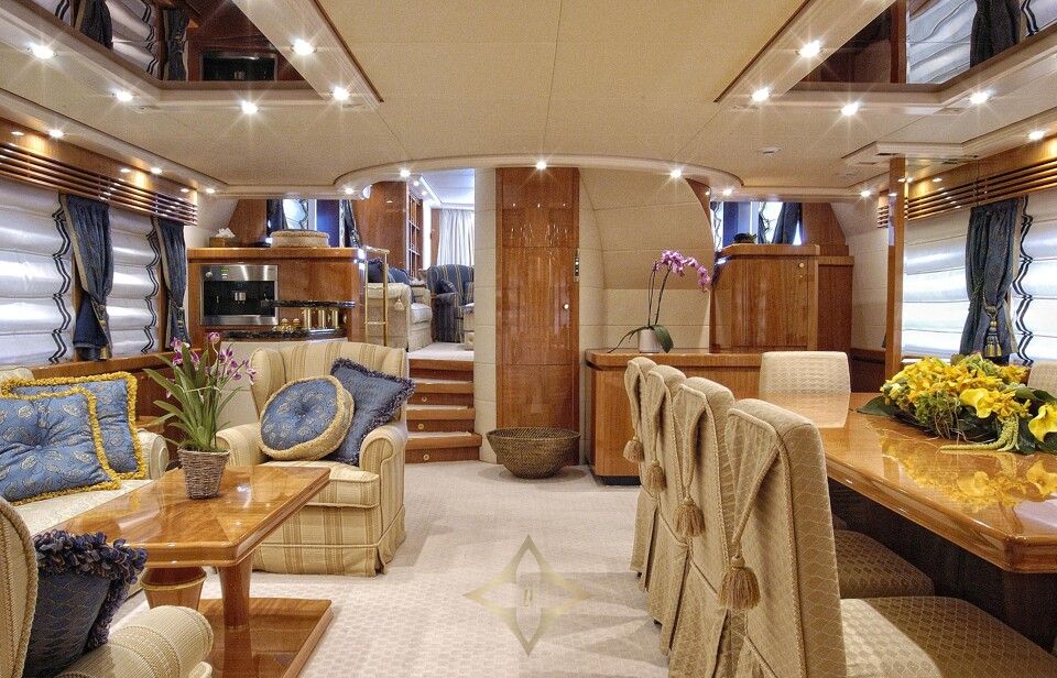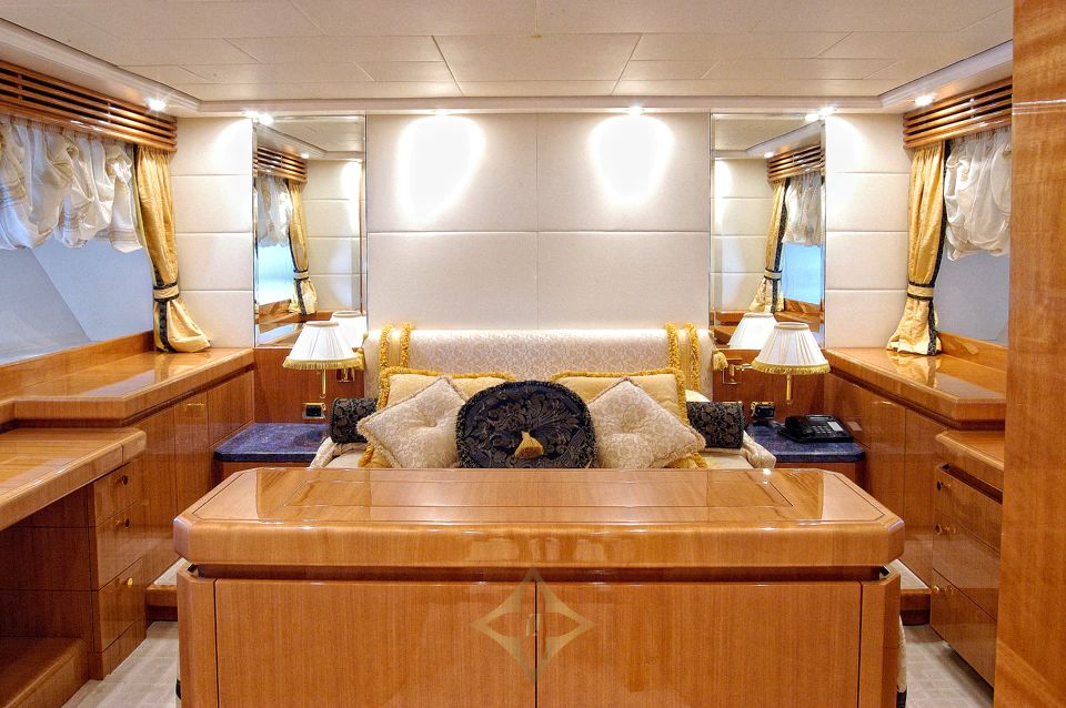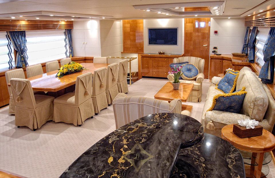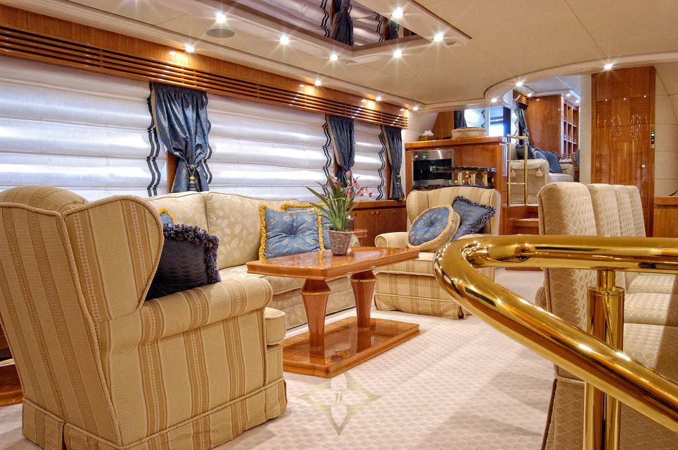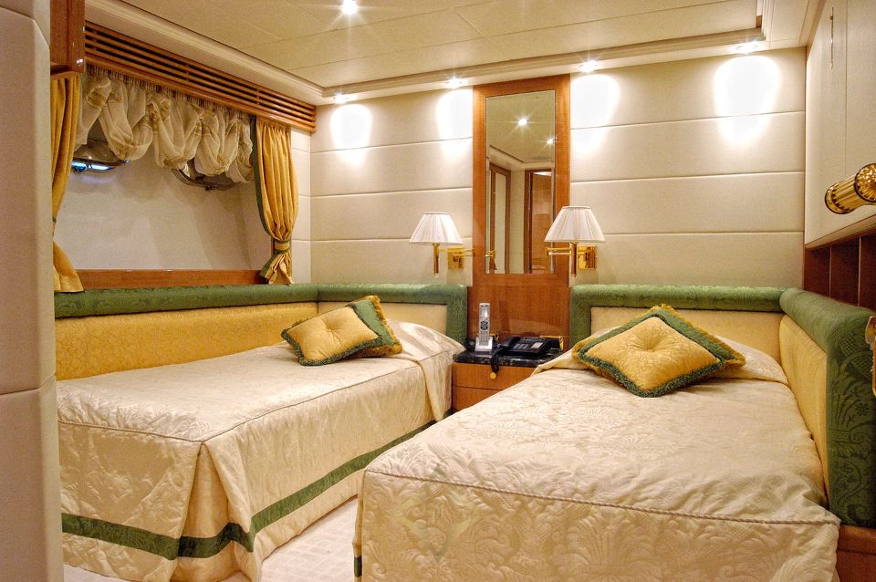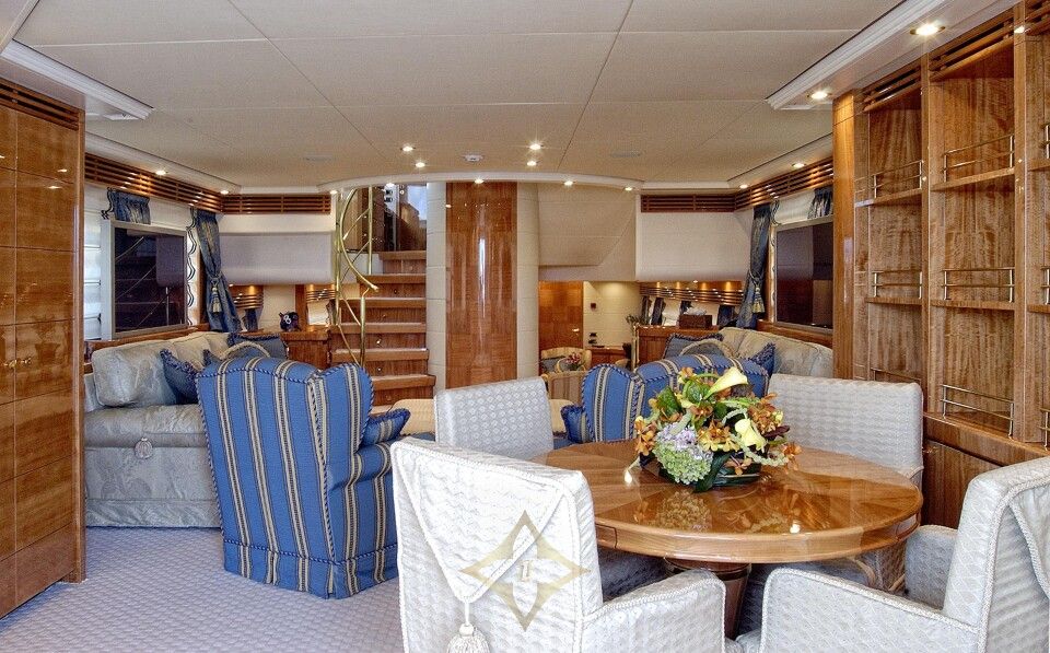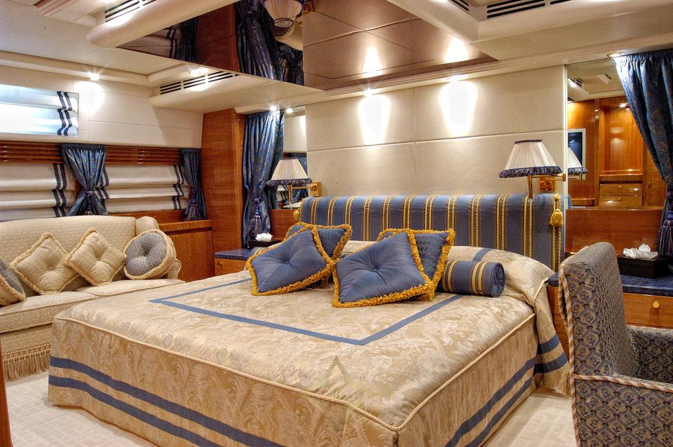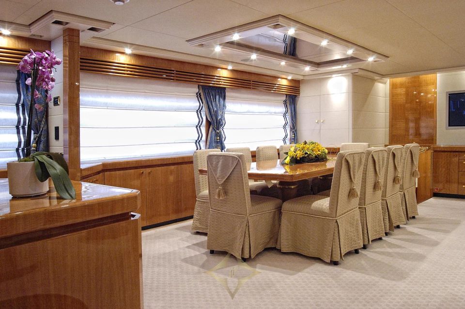 More spacious accommodation than most yachts in this size range, in an Owner's stateroom, a VIP stateroom and 4 guest staterooms, plus 7 crew in 4 cabins