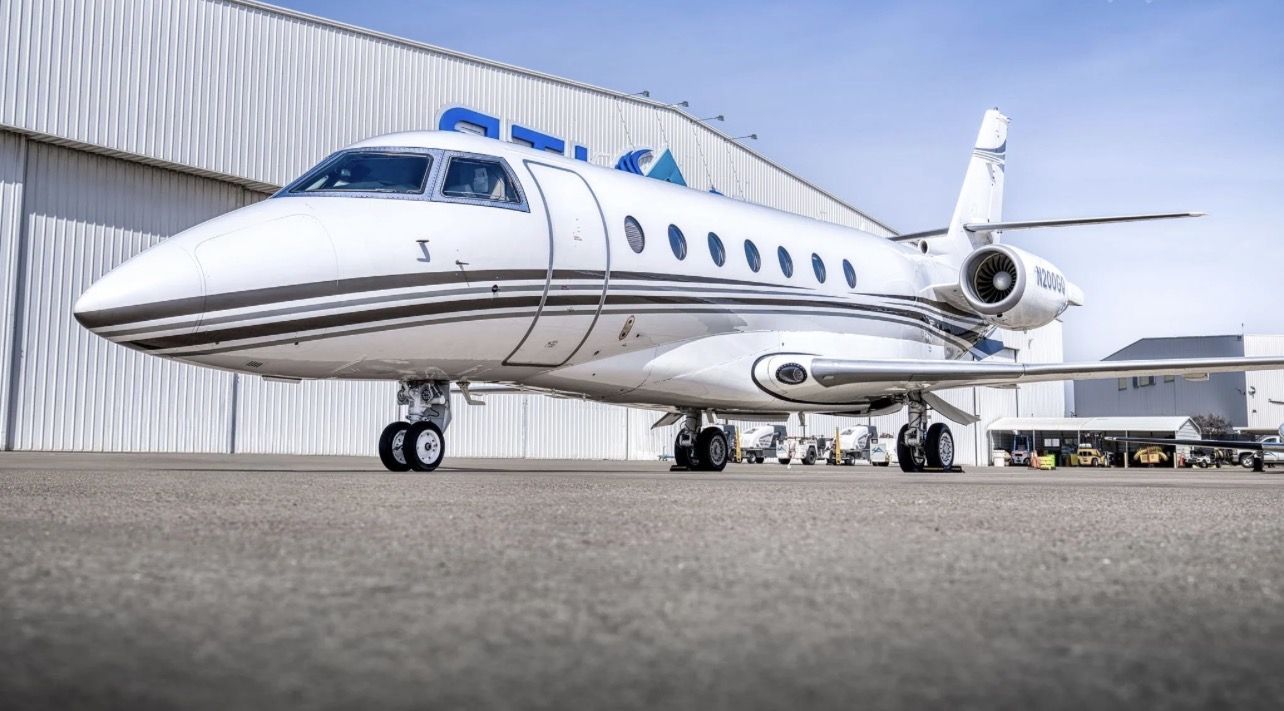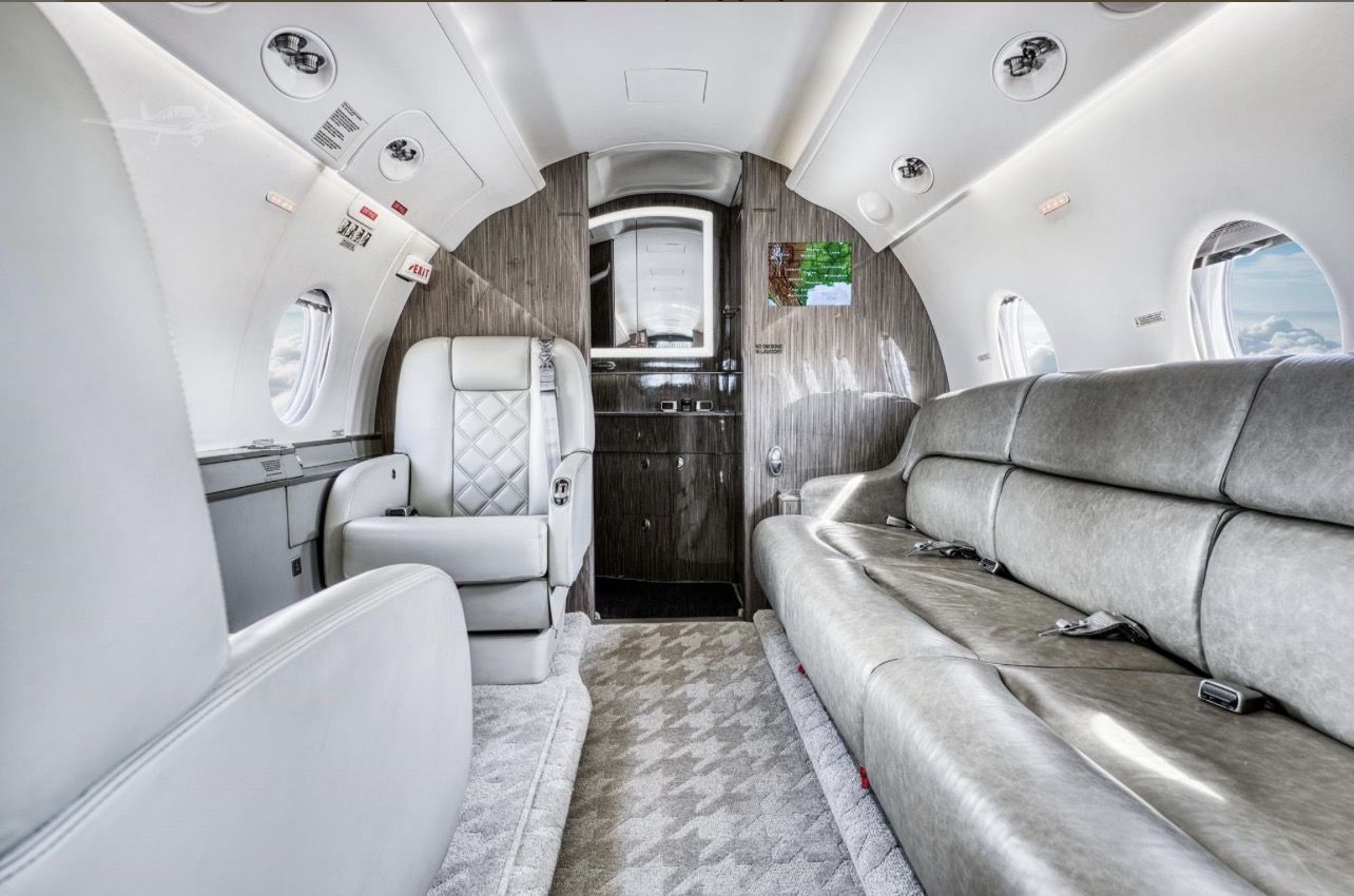 Painted in 2017, the aircraft is finished in a clean Matterhorn White base with elegant silver and gray accent striping. The scheme is modern and understated, complementing the sleek lines of the G200 while maintaining a timeless appearance. The paint presents very well overall and gives the aircraft a sharp ramp presence.
