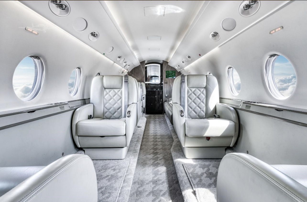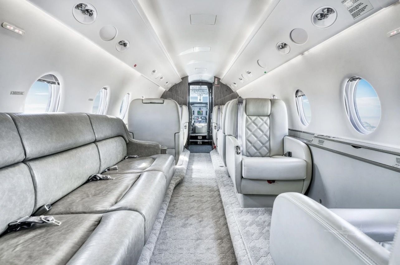 Newly completed in 2024, the interior is finished in a modern nine-passenger configuration featuring a forward four-place club, an aft single club, and a three-place side-facing divan. The cabin is upholstered in elegant gray diamond-stitched leather with beautiful matching carpets throughout, giving the aircraft a clean and contemporary feel. The refreshed interior presents exceptionally well and offers a comfortable, stylish cabin environment for passengers.