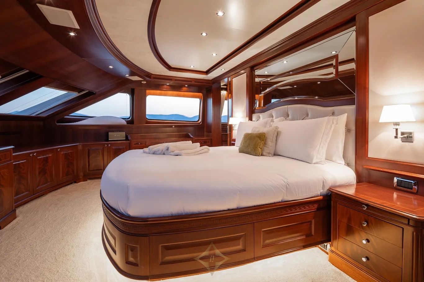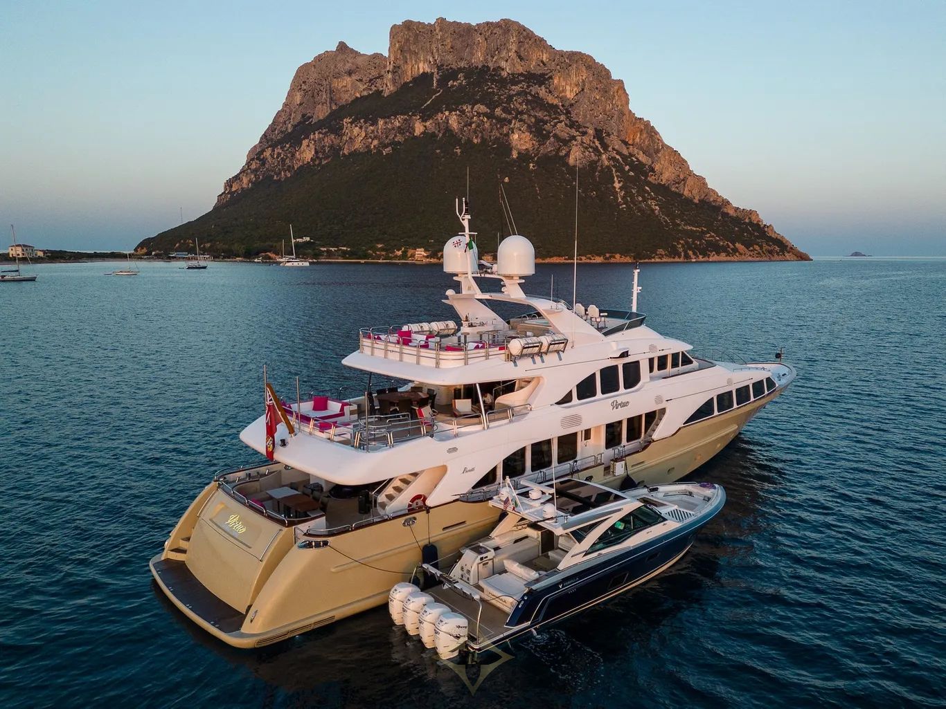 Designed by renowned naval architect Stefano Righini, VIRTUE was constructed in GRP by the esteemed Italian shipyard Benetti to RINA classification standards and delivered in 2008. Her sophisticated interior, conceived by acclaimed designer François Zuretti, accommodates up to 12 guests across five well-appointed cabins: a full-beam master suite, a VIP suite, one double cabin, and two twin cabins, each complemented by a pullman berth. All guest accommodations are equipped with state-of-the-art entertainment systems and complimented by luxurious en suite facilities. Crew quarters for up to seven are also provided on board, ensuring exceptional service and comfort for all guests.