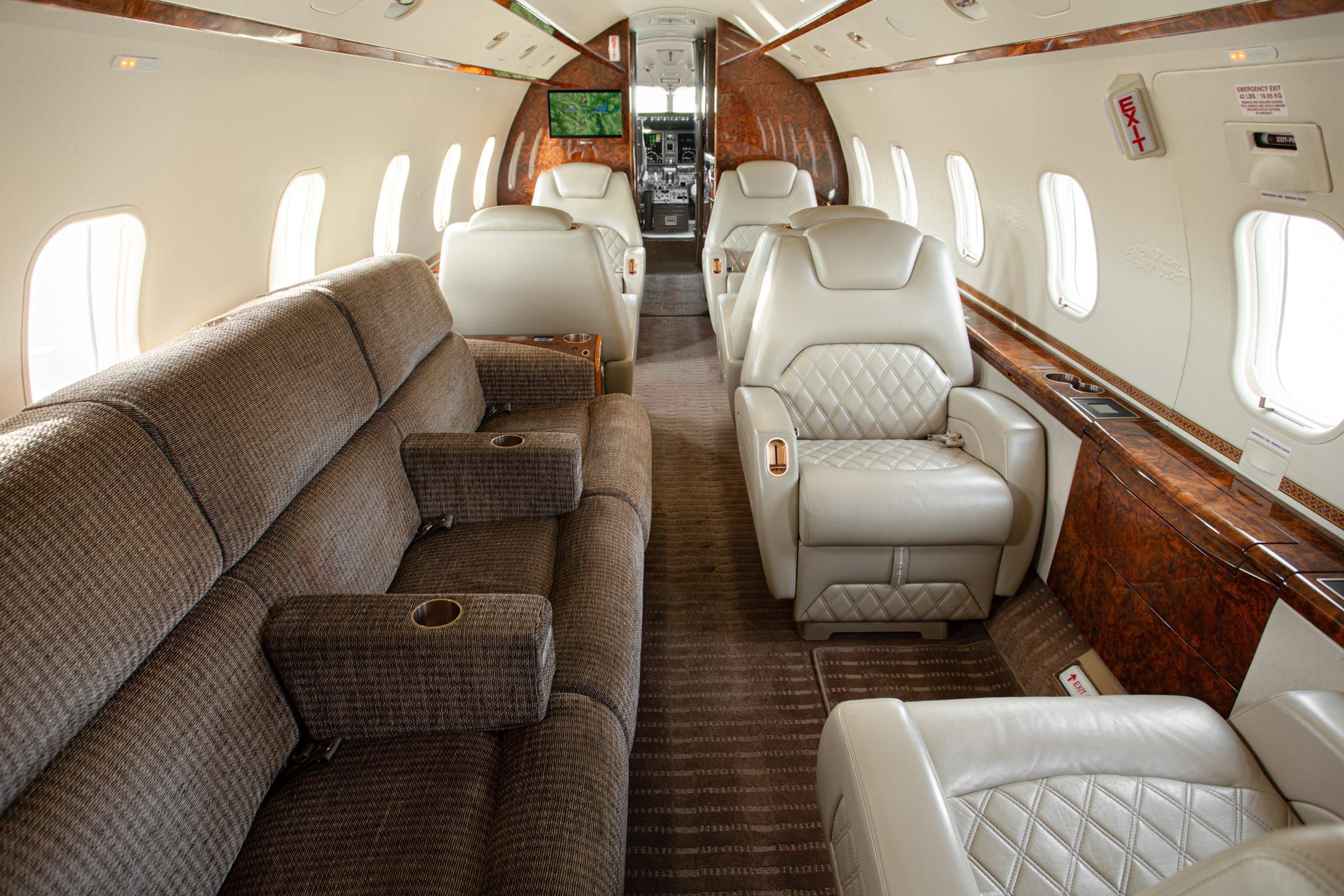 • 10 Passenger Configuration with FWD four-place Club, AFT three place Divan opposite a two-place Club, and AFT Belted Lav
