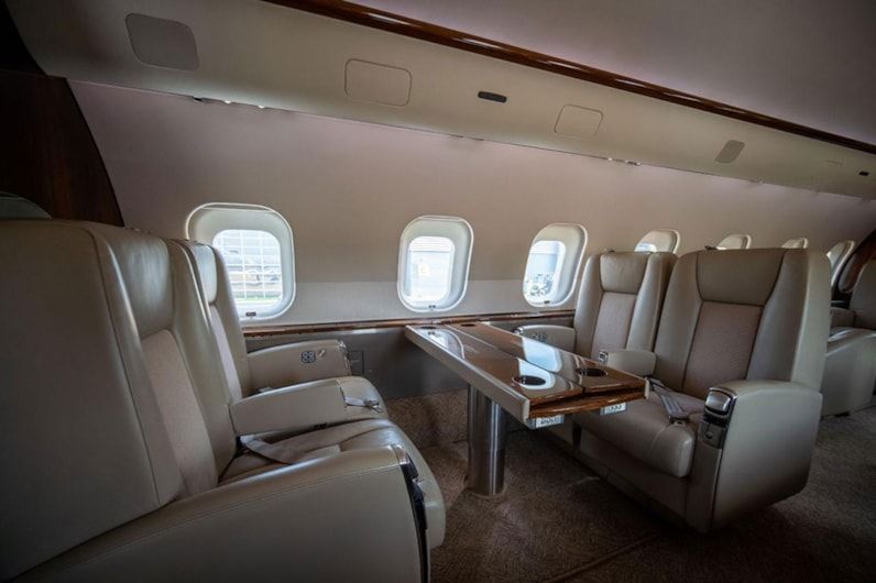 Thirteen (13) passenger cabin features 4-place club, followed by a 4-place conference group across from a credenza. In the aft cabin there is a 3-place berthable divan opposite a 2-place club. The forward galley is equipped with a High Temp and Microwave Oven, Food Chiller, Coffee Maker, and Espresso Machine. There are both forward and aft lavatories.