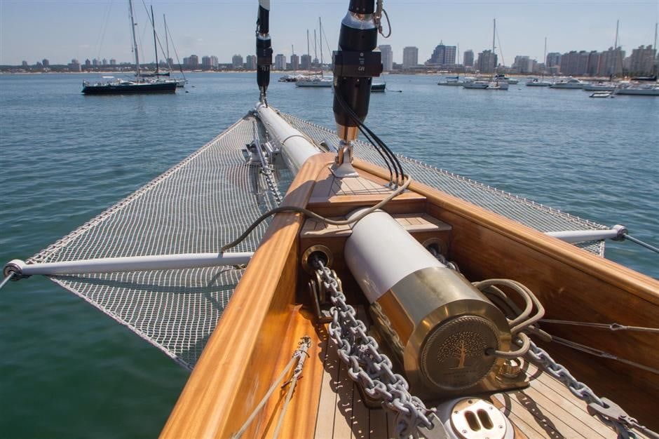 The custom schooner DONA FRANCISCA is a fusion of classic design and modern functionality. Recently refitted and meticulously maintained, she was constructed in Montevideo over five years in collaboration with global experts. DONA FRANCISCA is the brainchild of an owner with an unwavering passion for sailing and a lifetime of passion, hard work and adventurous endeavors. Inspired by the classical style of 1900s golden age sailing boats, she stands as the world's largest carbon fiber sailboat, a symbol of craftsmanship and engineering.
