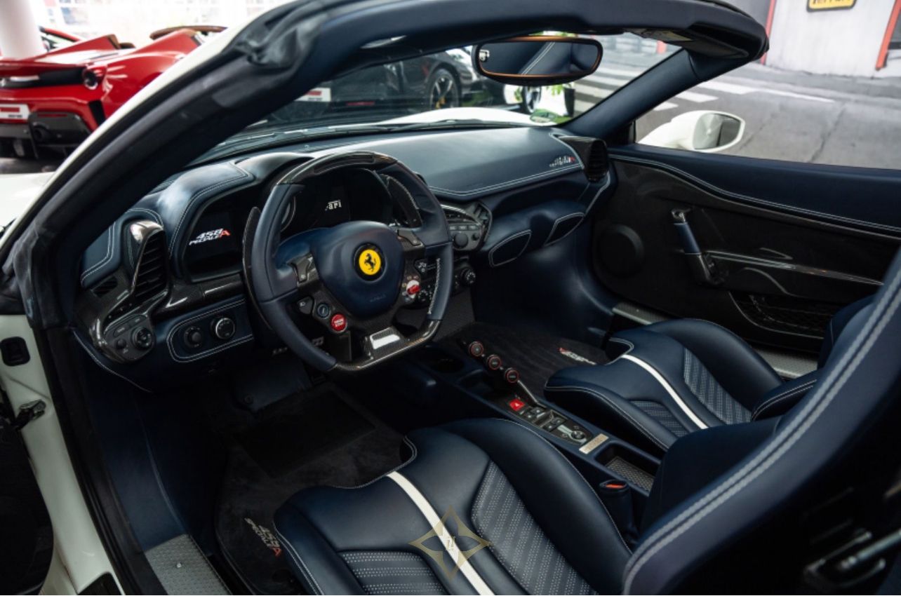 You can find the best part of its outstanding arquitecture at the back: the V8 engine of this 458 Speciale Aperta is an engeenering MASTERPIECE! A carefully crafted machine where the newest motor technology shines like never before.The power of a racing car in your hands. The best feeling you will ever know.