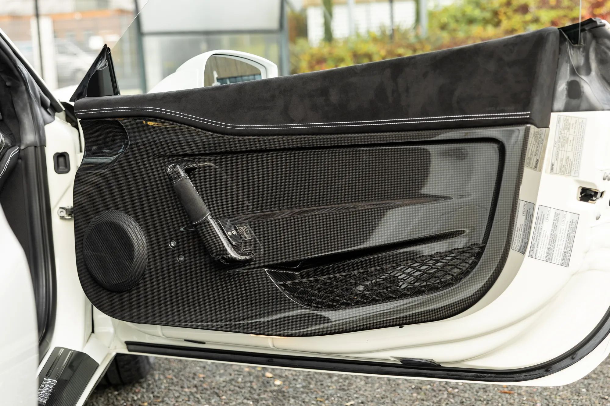 The cabin boasts extensive use of lightweight carbon fibre, including the steering wheel with LED shift lights, dashboard, central console, and door panels. It is also fitted with carbon fibre-shelled Sabelt racing seats, trimmed in a combination of Alcantara and breathable 3D fabric. Optional extras included a front axle lift system, the RadioNavi system with Bluetooth, front and rear parking sensors, and a rear-view camera.