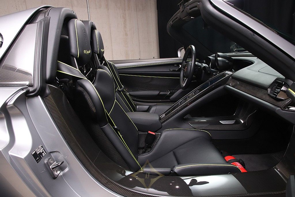 Interior package in reflective-reduced versionInterior package CarbonFire extinguisherStone protection film Electric seat height adjustment Seat bath for lightweight shell seatCharging cable6-point beltsSeatsBelts with accent stripes acidgreenPorsche Torque Vectoring Plus Porsche dual clutch transmission Manually foldable exterior mirrors Rain sensorBurmester audio systemEU versionBox seats 918 Spyder918 Spyder wheel (20/21-inch) Porsche Ceramic Brakes Cruise control Rear axle steering Porsche Active Suspension ManagementCentral locking wheelsTire control Car CoverInclination transmitter away protection alarm system with interior monitoring Alarm siren 2-zone automatic climate control LED headlights AC-WallboxNavigation module Porsche Car ConnectSports steering wheel with steering wheel rim in leather and more... Convince yourself of this dream car on site.
