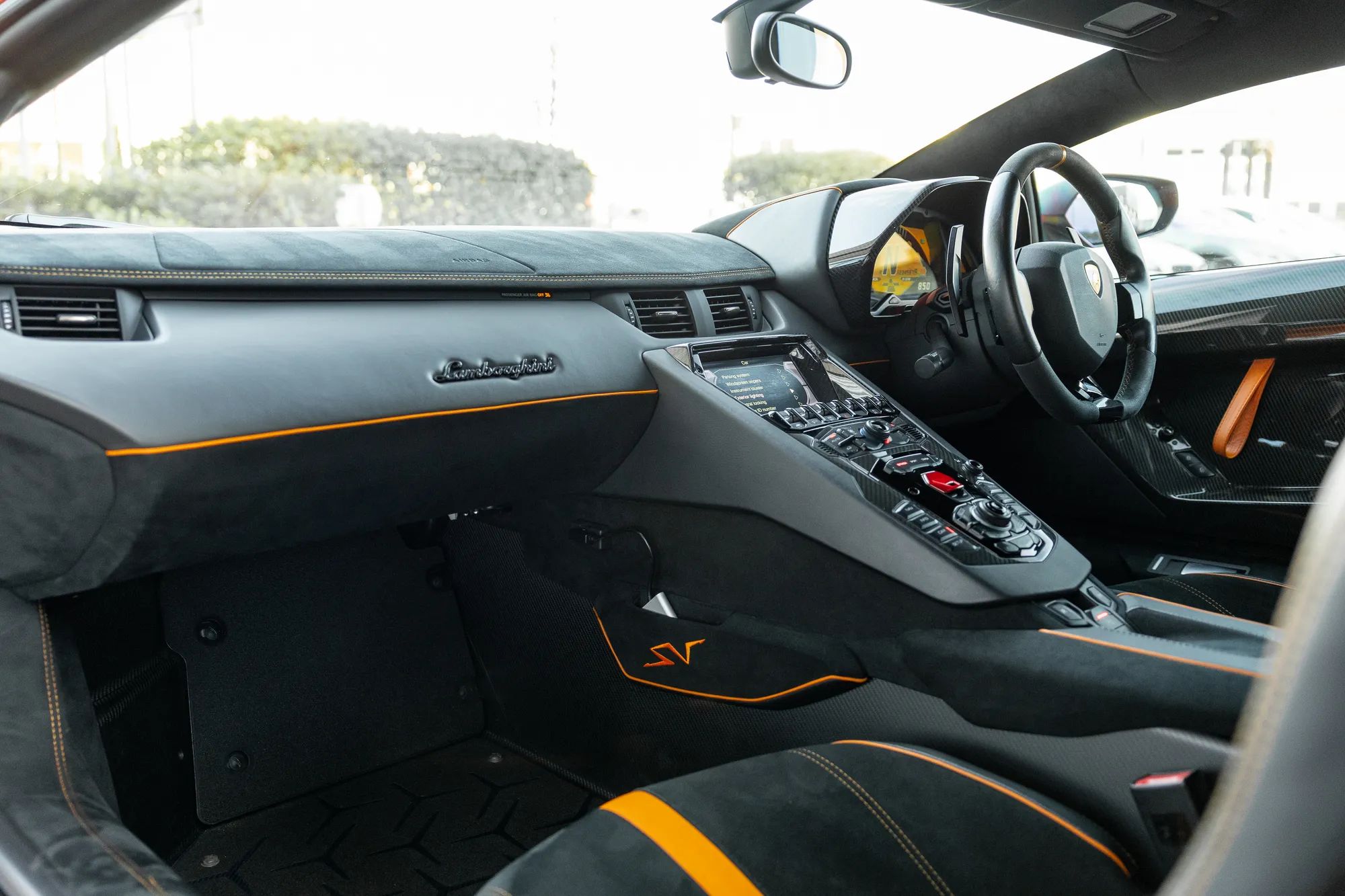 The Lamborghini Aventador SuperVeloce (SV) is a high-performance track-focused supercar, limited to only 600 units. It is powered by a naturally aspirated 6.5-litre V12 producing 740hp, driving all four wheels through a seven-speed Independent Shifting Rod (ISR) single-clutch automated manual transmission.