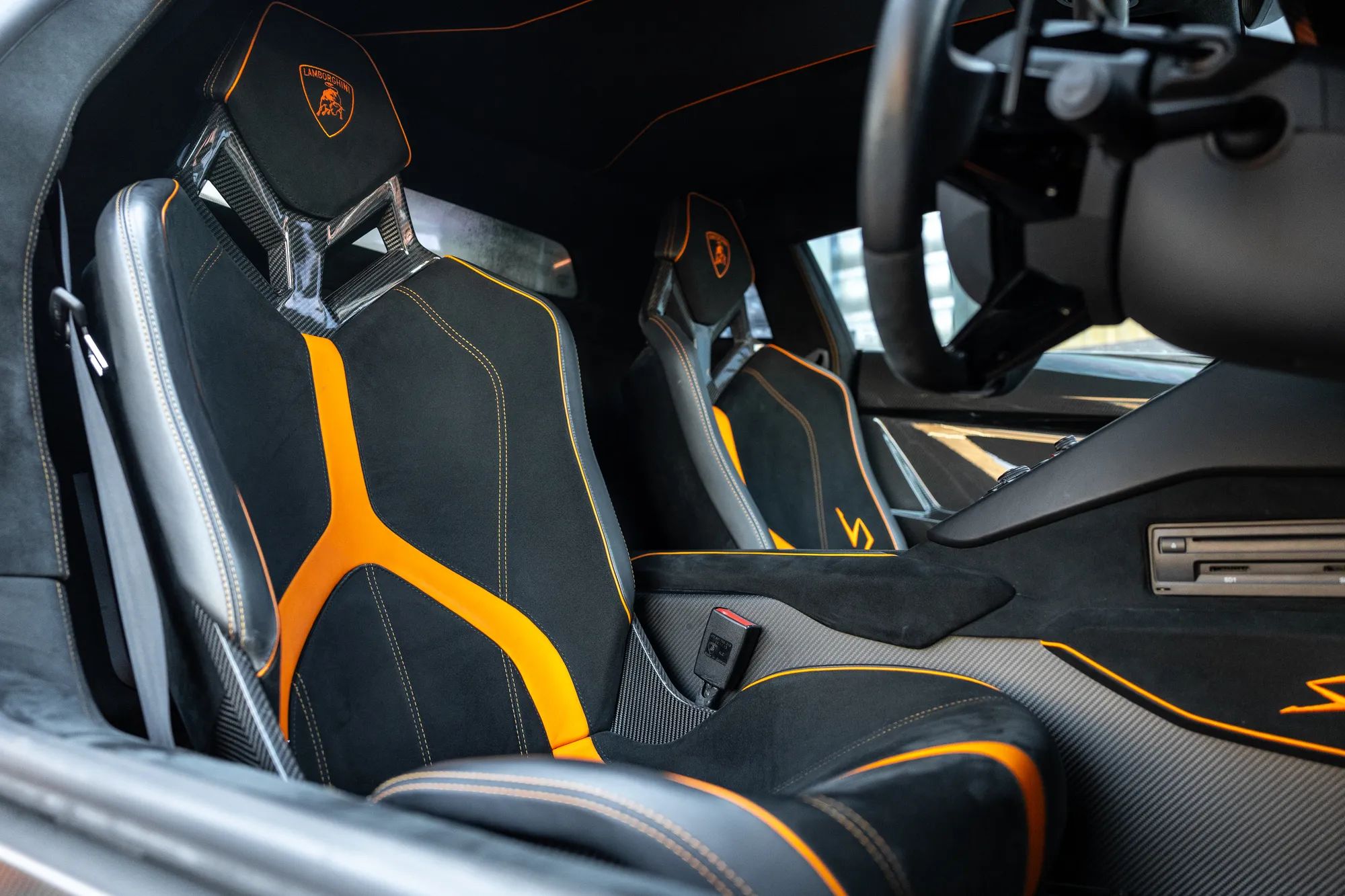 Key Points: Paint Protection Film (PPF), Arancio Atlas Exterior Paint, Carbon Fibre Backed Bucket Seats.