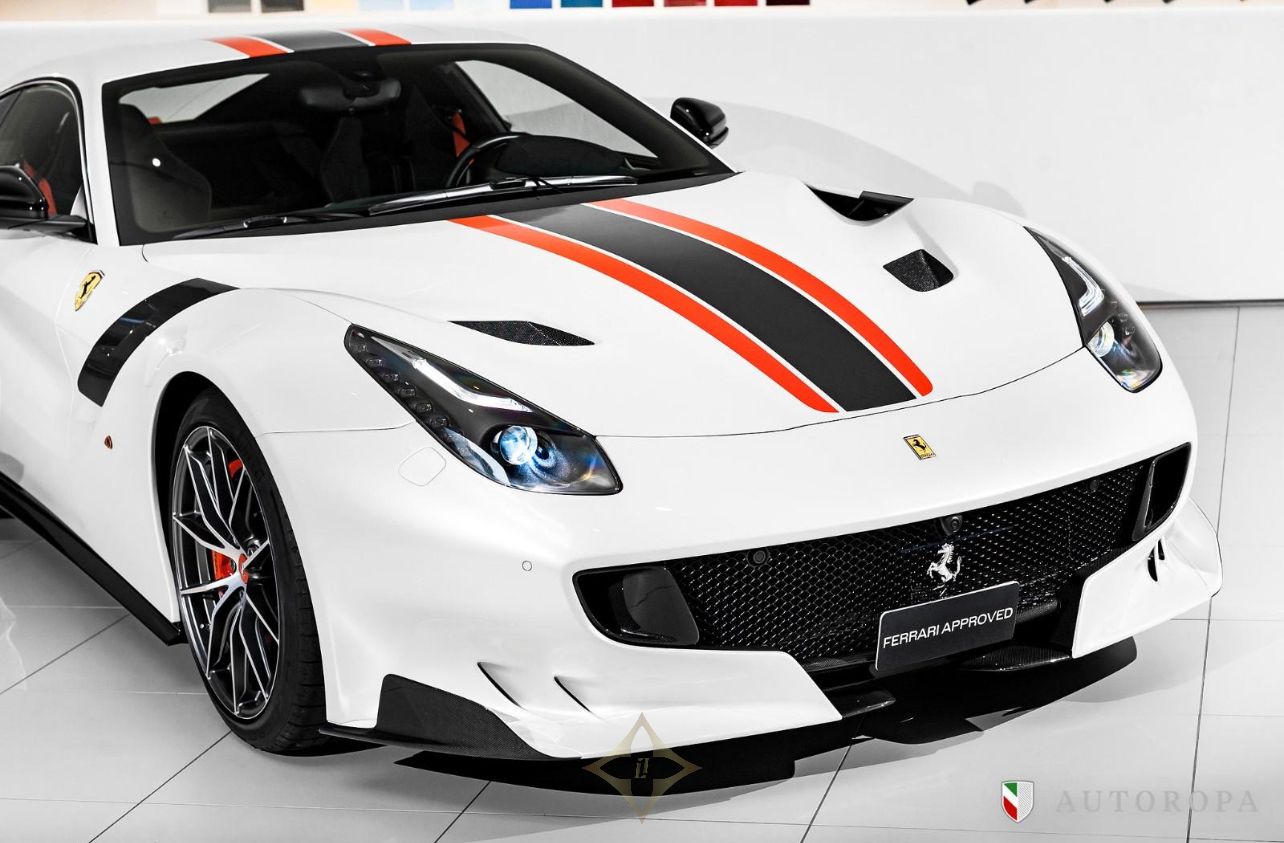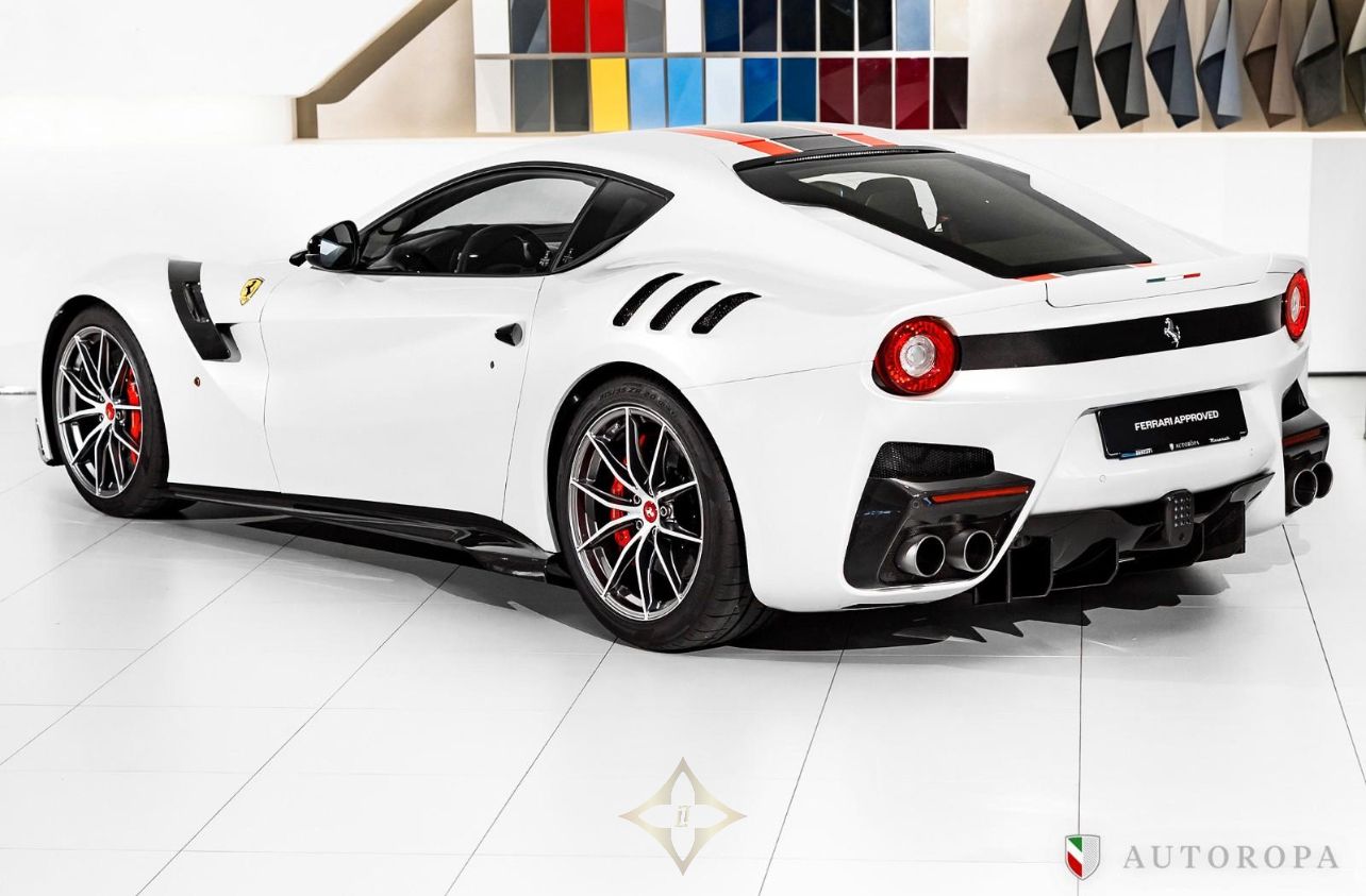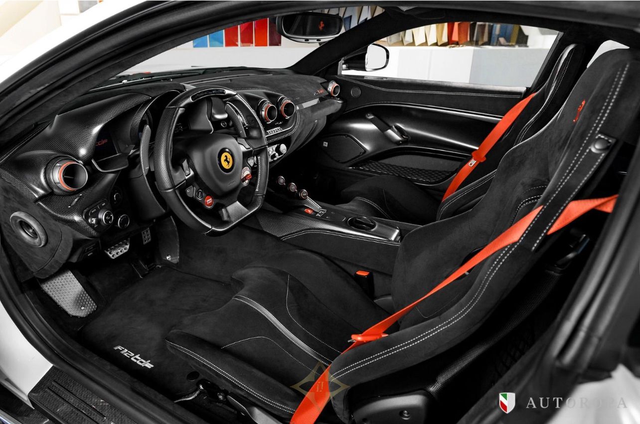 Ferrari F12 TDF Limited Edition 1/799 2017, Bianco Italia Pearl 3 layer special paint with Nero Alcantara interior, Fully specified as per standard spec on the F12 TDF model, Additional options to this vehicle, Full Nero Alcantara interior including lower dashboard, Special order with Nero Alcantara carpets, Central tunnel in Nero Alcantara, Apple CarPlay, Adaptive Bi-xenon lights, Nero Alcantara boot carpet, Carbon fibre headlight bucket, Rosso Scuderia brake calipers, Carbon fibre fog lights, Upper dashboard in Nero Alcantara, Titanium sport exhaust end pipes, Fire extinguisher, Nero Alcantara mats with F12 TDF embroidered logos, Navigation with Bluetooth phone connection, Front and rear park cameras, Passenger display, Special order Racing Livery in Grigio Ferro Met with Rosso outer lines, White rev counter, Carbon fibre racing seats in Large, Interior stitching in Grigio Chiaro light grey, 20” forged rims in Diamond design, Rosso belts, Carbon fibre rear bench, Carbon fibre dashboard, Upper zone in Nero Alcantara, Under door covers in carbon fibre, Cavallinos embroidered in neck rests in Rosso, Bose HiFi sound system, Integrated audio system, Rear shelf in Nero Alcantara, Special order with painted wheel cups and exterior door handles in Carbon fibre also Italian flag long and thin in the rear, The car was delivered as new from Autoropa Official Ferrari dealer in Sweden spring 2017 and have had the same owner since, Annually maintained and in absolute new car condition, In stock ready for delivery, Ferrari Approved tested, Please call or e-mail for more info,