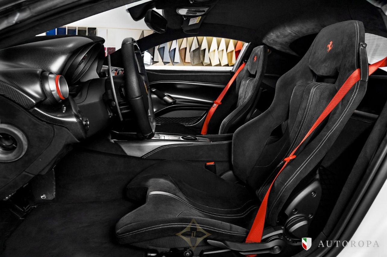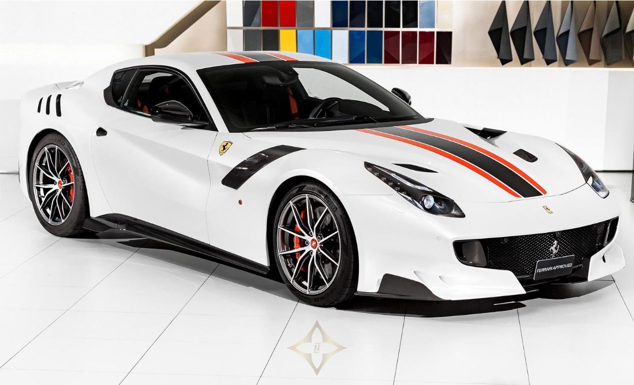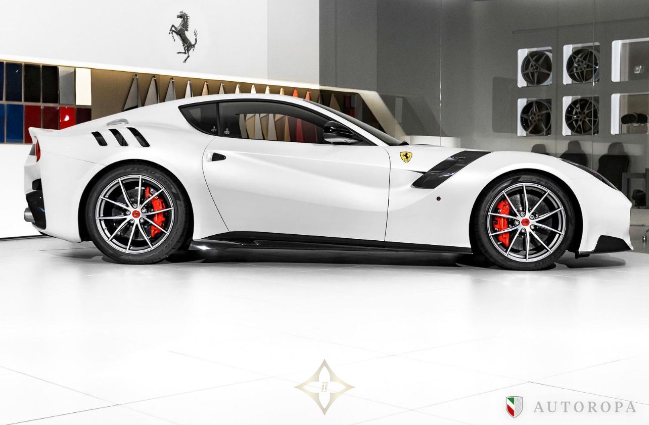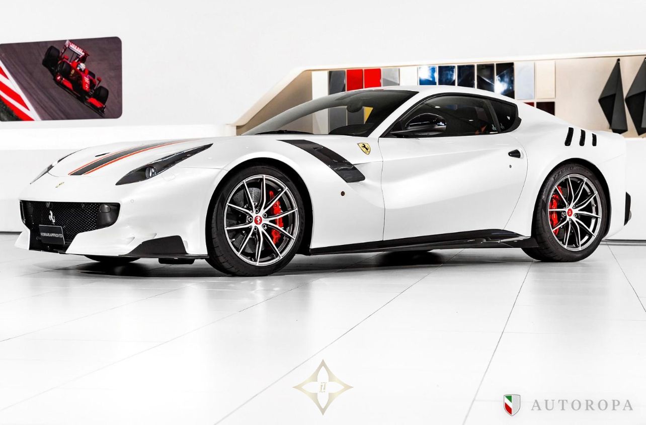 Ferrari F12 TDF Limited Edition 1/799 2017, Bianco Italia Pearl 3 layer special paint with Nero Alcantara interior, Fully specified as per standard spec on the F12 TDF model, Additional options to this vehicle, Full Nero Alcantara interior including lower dashboard, Special order with Nero Alcantara carpets, Central tunnel in Nero Alcantara, Apple CarPlay, Adaptive Bi-xenon lights, Nero Alcantara boot carpet, Carbon fibre headlight bucket, Rosso Scuderia brake calipers, Carbon fibre fog lights, Upper dashboard in Nero Alcantara, Titanium sport exhaust end pipes, Fire extinguisher, Nero Alcantara mats with F12 TDF embroidered logos, Navigation with Bluetooth phone connection, Front and rear park cameras, Passenger display, Special order Racing Livery in Grigio Ferro Met with Rosso outer lines, White rev counter, Carbon fibre racing seats in Large, Interior stitching in Grigio Chiaro light grey, 20” forged rims in Diamond design, Rosso belts, Carbon fibre rear bench, Carbon fibre dashboard, Upper zone in Nero Alcantara, Under door covers in carbon fibre, Cavallinos embroidered in neck rests in Rosso, Bose HiFi sound system, Integrated audio system, Rear shelf in Nero Alcantara, Special order with painted wheel cups and exterior door handles in Carbon fibre also Italian flag long and thin in the rear, The car was delivered as new from Autoropa Official Ferrari dealer in Sweden spring 2017 and have had the same owner since, Annually maintained and in absolute new car condition, In stock ready for delivery, Ferrari Approved tested, Please call or e-mail for more info,