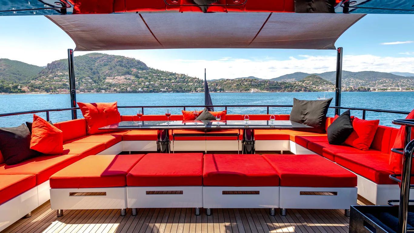 Her meticulously designed Asian-inspired interior enjoys a modern achromatic colour palette, enhanced by exclusive fabrics. The spacious main deck salon leads directly to the largest aft deck found on any 50-metre yacht, with a bar, barbecue, al fresco dining area and comfortable sofas to accommodate large groups of friends and family.