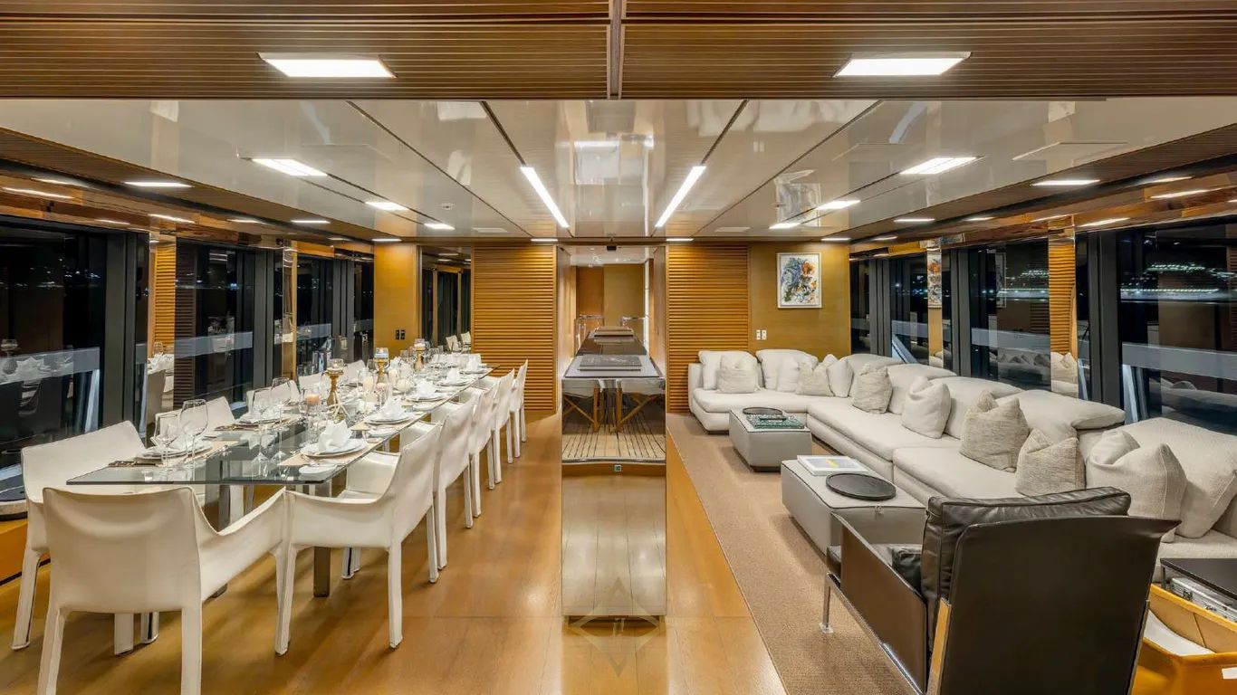 With a cruising speed of 13.5 knots, a maximum of 17, and a range of up to 4,000 nautical miles at economical speed, SEVEN SINS is equally at home in the Mediterranean or Caribbean. Maintained to the highest standards with two yard periods per year and brand-new generators this winter, she is turnkey, versatile, and endlessly inviting; a yacht that delivers the presence and sophistication of a much larger vessel without the complexity.