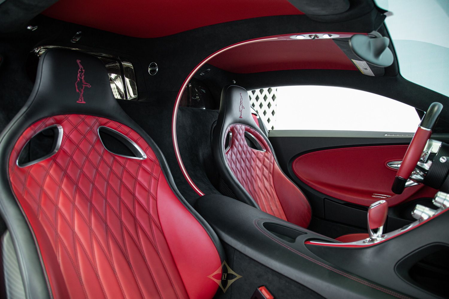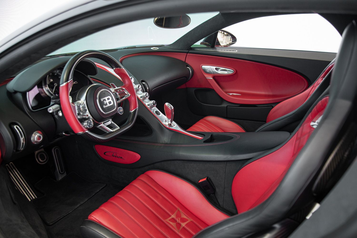Step inside the Chiron, and you'll be greeted by a world of opulence and sophistication. The black and red leather interior creates a harmonious blend of luxury and sportiness, enveloping you in comfort. The meticulously crafted seats provide excellent support during high-speed manoeuvres, ensuring a thrilling yet comfortable ride. The dancing elephant accents on the headrests add a unique and playful touch, showcasing the bespoke craftsmanship and attention to detail.