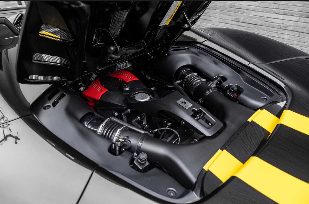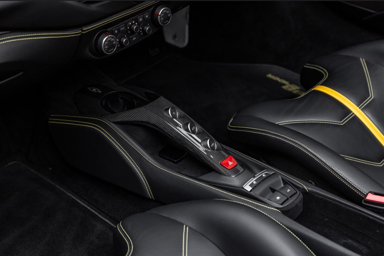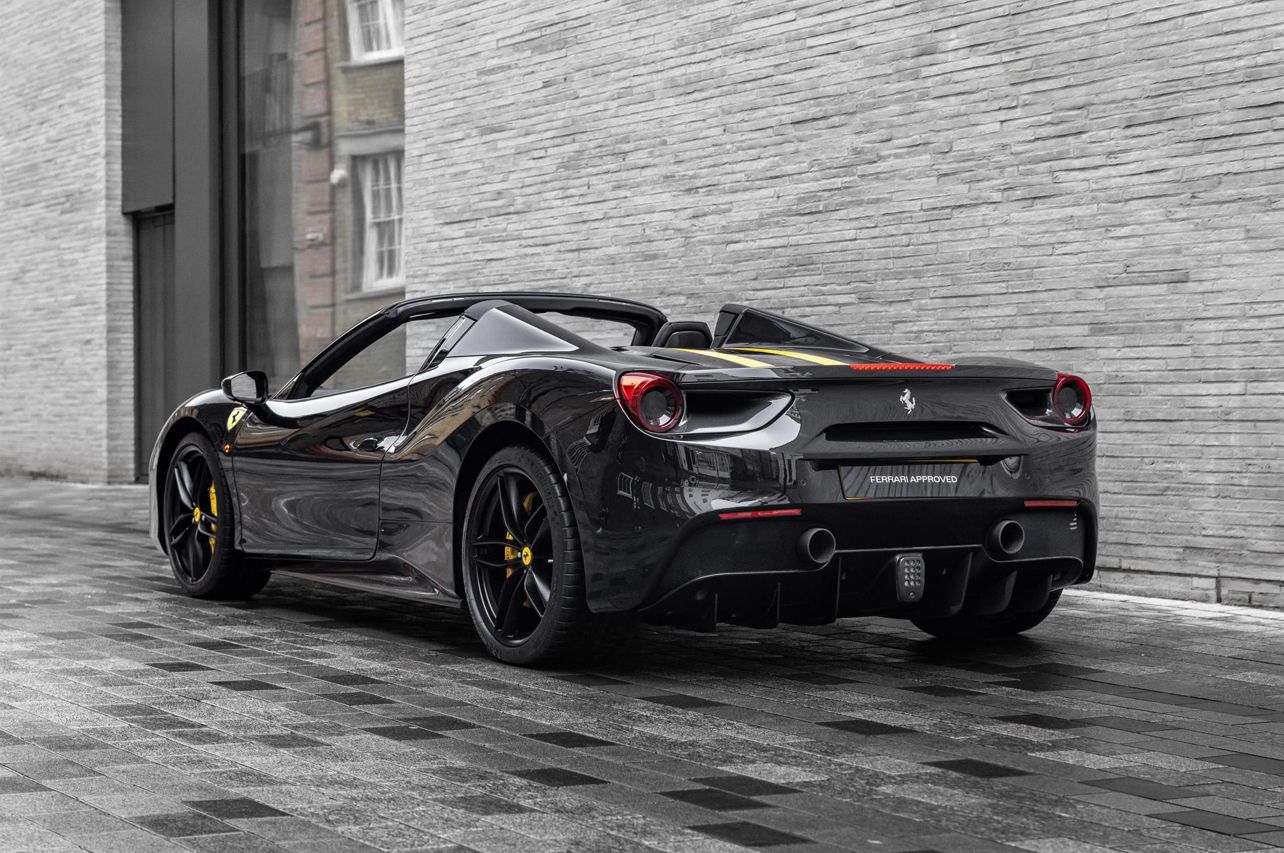 Finished in the timeless and purposeful Nero Daytona with a Nero leather interior, this Ferrari 488 Spider is a beautifully specified and exceptionally low-mileage example of Maranello’s acclaimed open-top V8 supercar. Registered in October 2018 and supplied new by H.R. Owen Ferrari London, it has had just one owner and covered only 3,150 miles, presenting in outstanding condition throughout. The exterior is enhanced by a comprehensive carbon fibre package including the carbon racing pack, paired with 20″ forged wheels in matte Grigio Corsa, sports tailpipe tips, and Giallo Modena brake callipers, giving the car a striking and aggressive stance while retaining a refined, understated look. Inside, the driver-focused cabin features carbon fibre Goldrake racing seats in Taglia Large, yellow contrast stitching, embroidered Cavallino headrests, and the iconic yellow rev counter, delivering a perfect balance of luxury and motorsport inspiration. The upper cabin in Nero leather adds a further layer of craftsmanship and comfort. Specification highlights include front suspension lift, adaptive headlights, rear parking camera, front parking sensors, electrochromic mirrors, and Ferrari’s HELE efficiency system, ensuring everyday usability alongside thrilling performance. A superbly presented, one-owner 488 Spider in an iconic colour combination, a truly outstanding opportunity. CALY – Giallo Modena brake calipers CFEP – Carbon fibre pack for exterior CRPK – Racing pack in carbon fibre EXA3 – Sports tailpipe tips FLMA – Overmats with embroidered vehicle logo LOGO – “Scuderia Ferrari” shields on wings RIFS – 20″ forged wheels, matte Grigio Corsa RIMM – Matt painted wheels CRPT – Carpet colour: Nero 152 EMPH – Embroidered Cavallino emblem on headrest (Filo Giallo) RMPY – Yellow rev counter RSCG – “Goldrake” carbon fibre racing seats (Sedili Taglia Large) RSES – Manual ratchet seat height adjustment STC2 – Special stitching (Filo Speciale Giallo) ULEZ – Upper zone in Nero leather AFS1 – Adaptive frontlight system ATTC – Drawing Attached ELEV – Front suspension lift FNEN – Functional equipment HELE – High Emotion Low Emission system MIR2 – Electrochromic exterior & interior mirrors NDSP – N.O.T.A Sulla Disposizione NVT1 – 1-year anti-theft satellite system subscription PAC1 – Rear parking camera PAR2 – Front parking sensors SPEC – Special Features