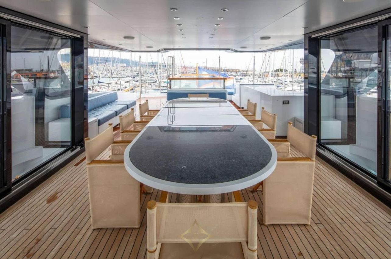 The Ocean Dreamwalker III is a 47.2-meter luxury explorer yacht, delivered by Sanlorenzo in 2018 as the inaugural model of their 500EXP series. Designed by Francesco Paszkowski, she features a steel hull and aluminum superstructure, combining robust construction with elegant aesthetics. Powered by twin Caterpillar engines, the yacht offers a top speed of 15 knots and a cruising range of 4,000 nautical miles at 11 knots. Accommodations include five staterooms for up to 10 guests, serviced by a crew of eight. Notable amenities encompass a spacious aft deck with a helipad, a beach club, and a heated swimming pool, ensuring both adventure and comfort for all on board.
