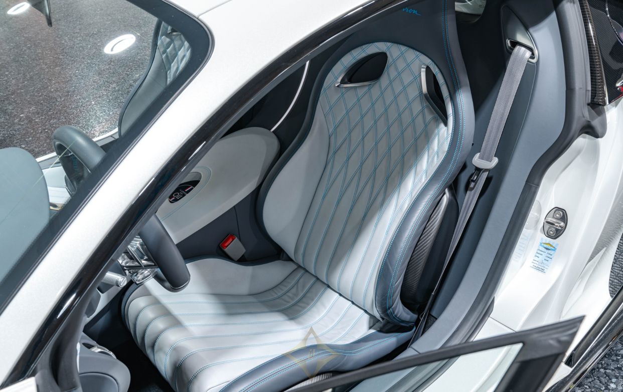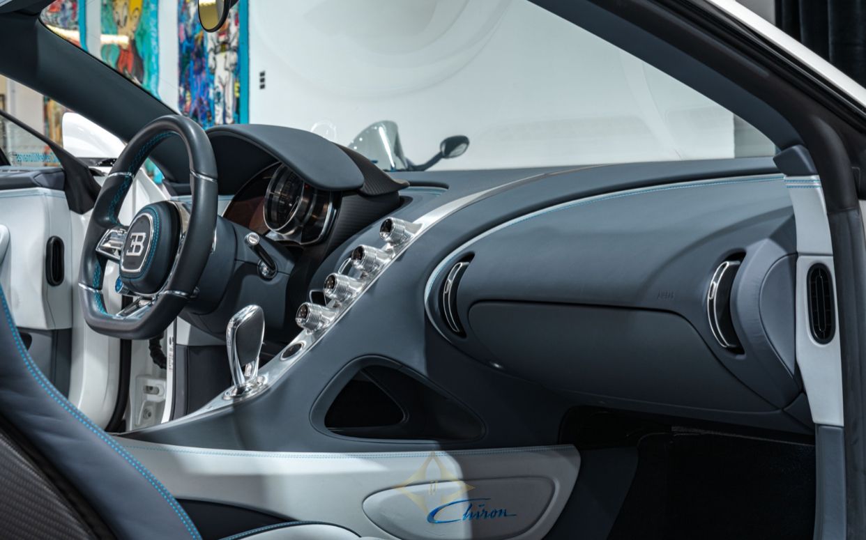 The One-Off Collection is thrilled to present one of the most exclusive vehicles on the planet, the Bugatti Chiron. This remarkably rare Glacier on Glacier spec is truly breathtaking. Bugatti Light Blue Sport accents can be found on the brake calipers and throughout the interior. Black carbon exterior components are found at every angle, contrasting the multi-stage Glacier paint beautifully. The HRE forged wheels currently on the car, a set of forged 5-spoke 1886 wheels, and the factory Caractere wheels are all included in the sale.