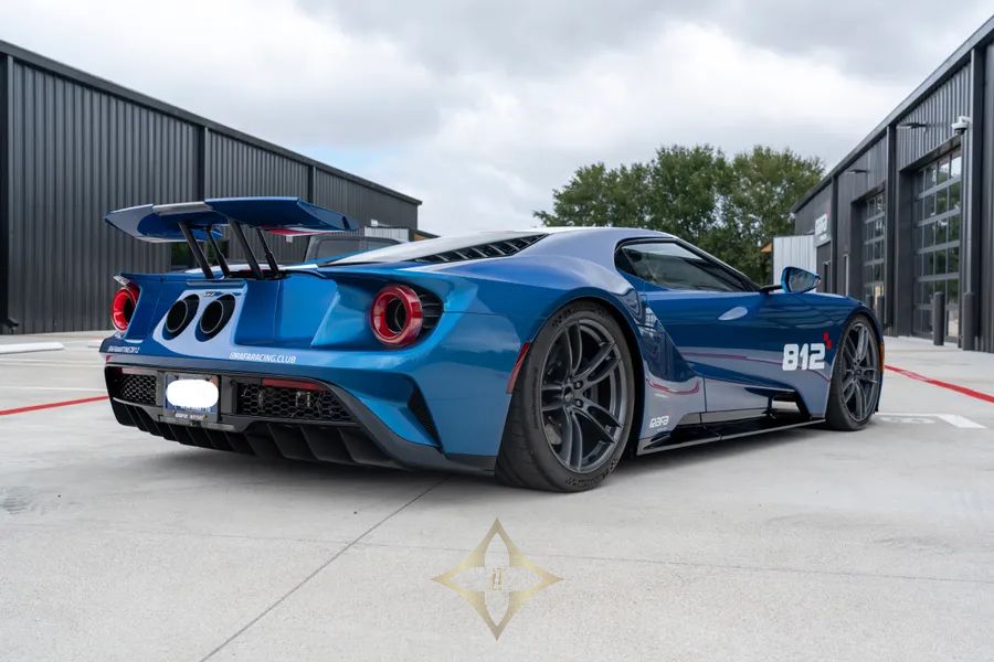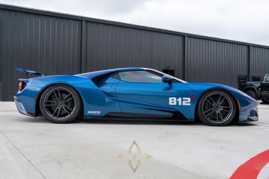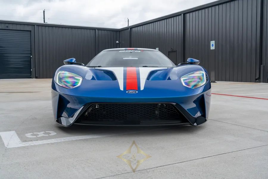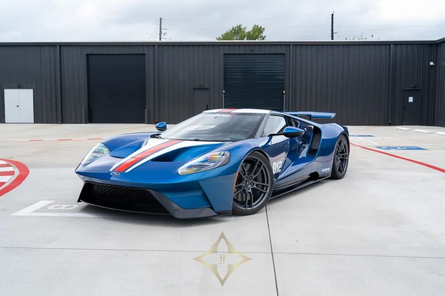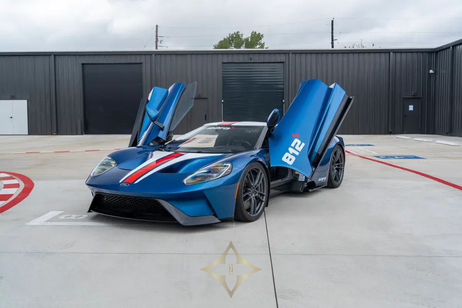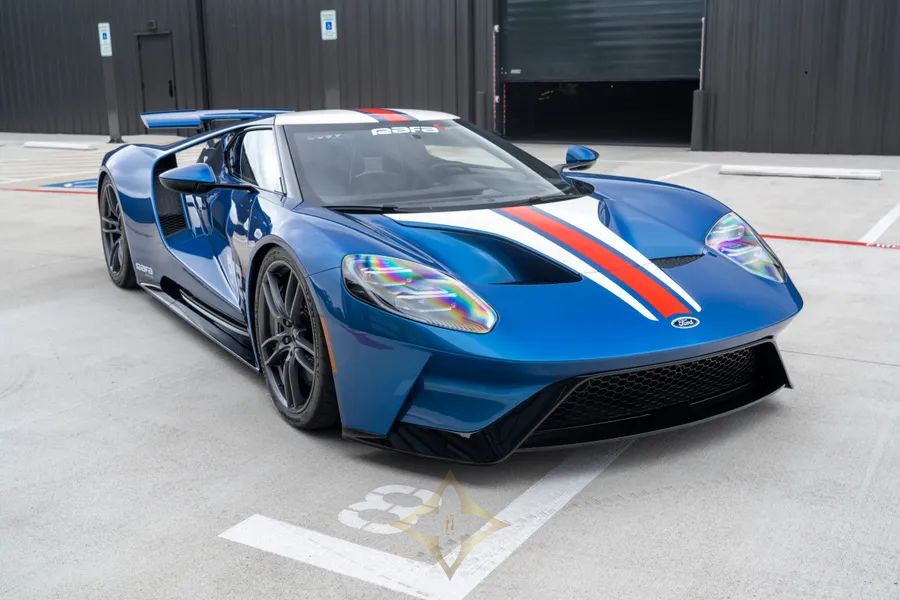 This pristine 2019 Ford GT is a rare find with only 713 miles on the odometer. Finished in a stunning Liquid Blue, it features a Black interior that perfectly complements its sleek design. Powered by a 3.5L V6 EcoBoost Twin Turbo engine, this supercar delivers an exhilarating driving experience with its 7-speed dual-clutch automatic transmission.