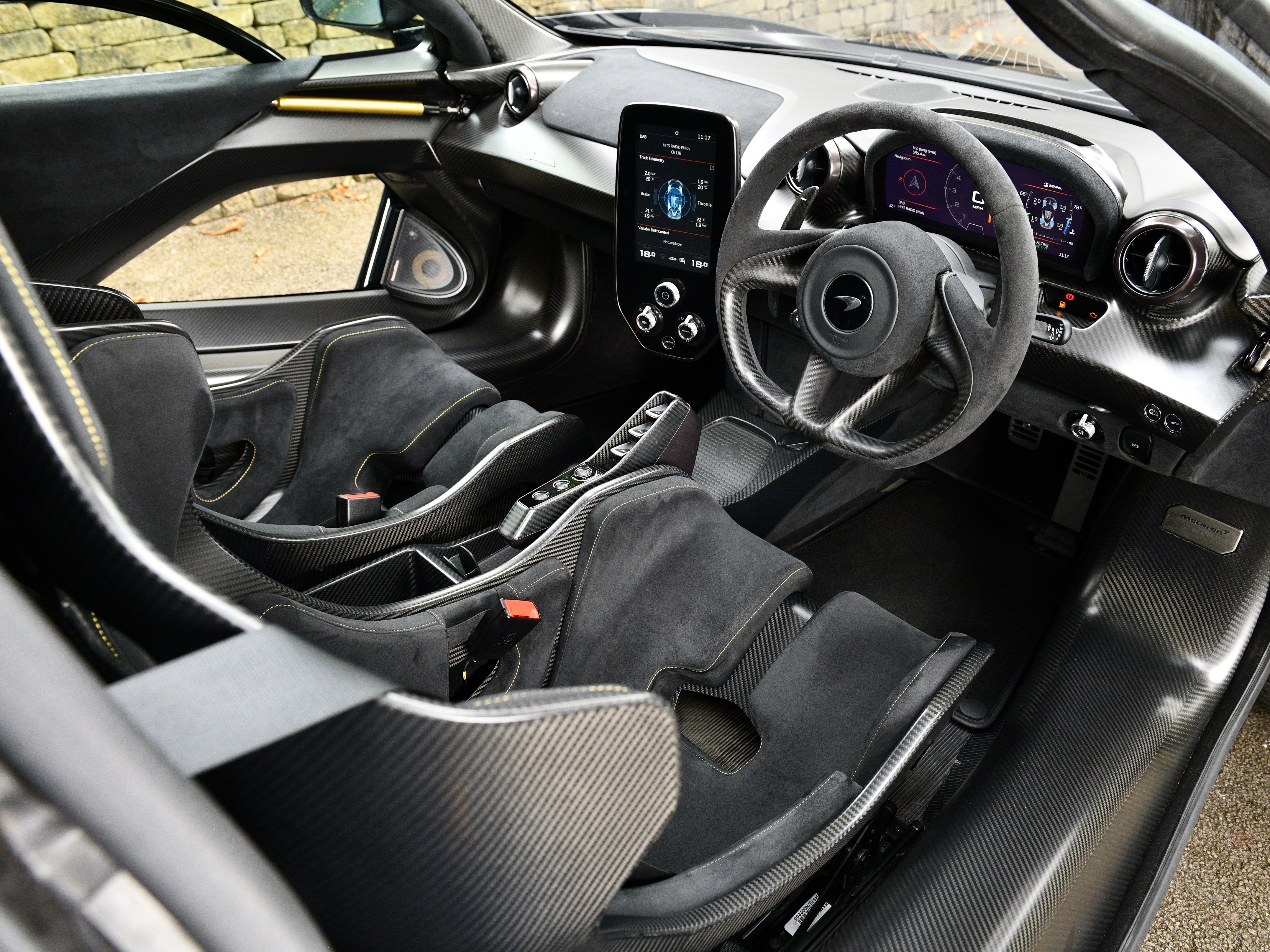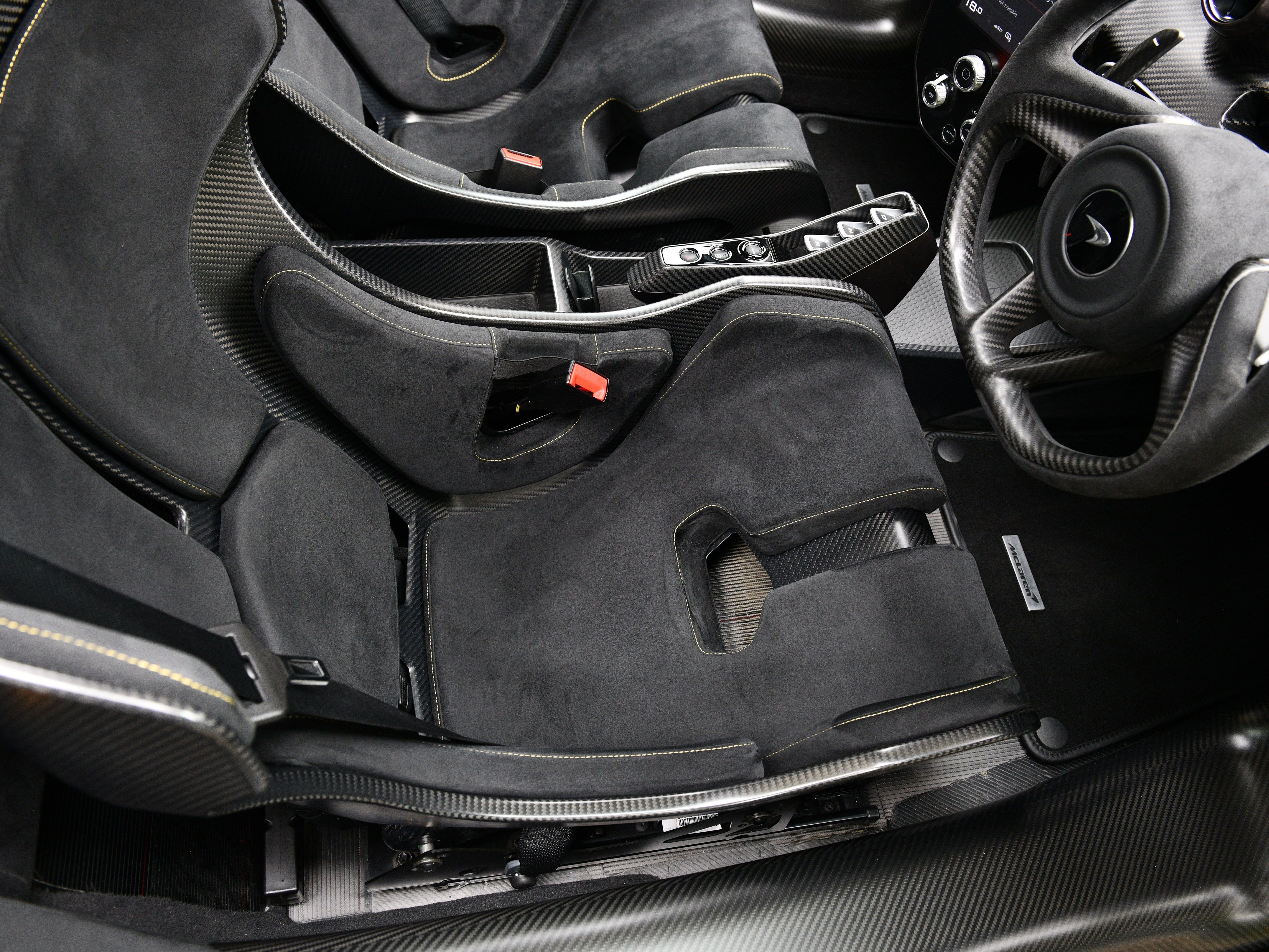 Specified with a host of MSO and factory options that include: MSO special paint finish, Gorilla Glass door upper panels, Gorilla Glass lower door panels, rear upper bulkhead in glass, MSO gold stitched seat pads, Alcantara interior trim, MSO gold stitched steering wheel with an Alcantara finish, MSO Galvanic Grey interior finish, MSO Speedline gold door shuts, passenger adjustable seat position, adjustable steering column, Bowers & Wilkins 7-speaker audio system, McLaren track telemetry app with cameras, vehicle lifting system, front and rear parking sensors with rear parking camera, tyre pressure monitoring system, McLaren branded floor mats, MSO full length carbon-fibre sill panels, MSO 24k gold engine bay surround, exhaust heat shield finished in dark Stealth, MSO Speedline gold centre nuts, MSO Speedline gold callipers, carbon-ceramic brakes, fire extinguisher, warning triangle, full body PPF and vehicle tracking system. In addition, the car is fitted with the very rare 7-spoke carbon wheels and sports exhaust pipes.
