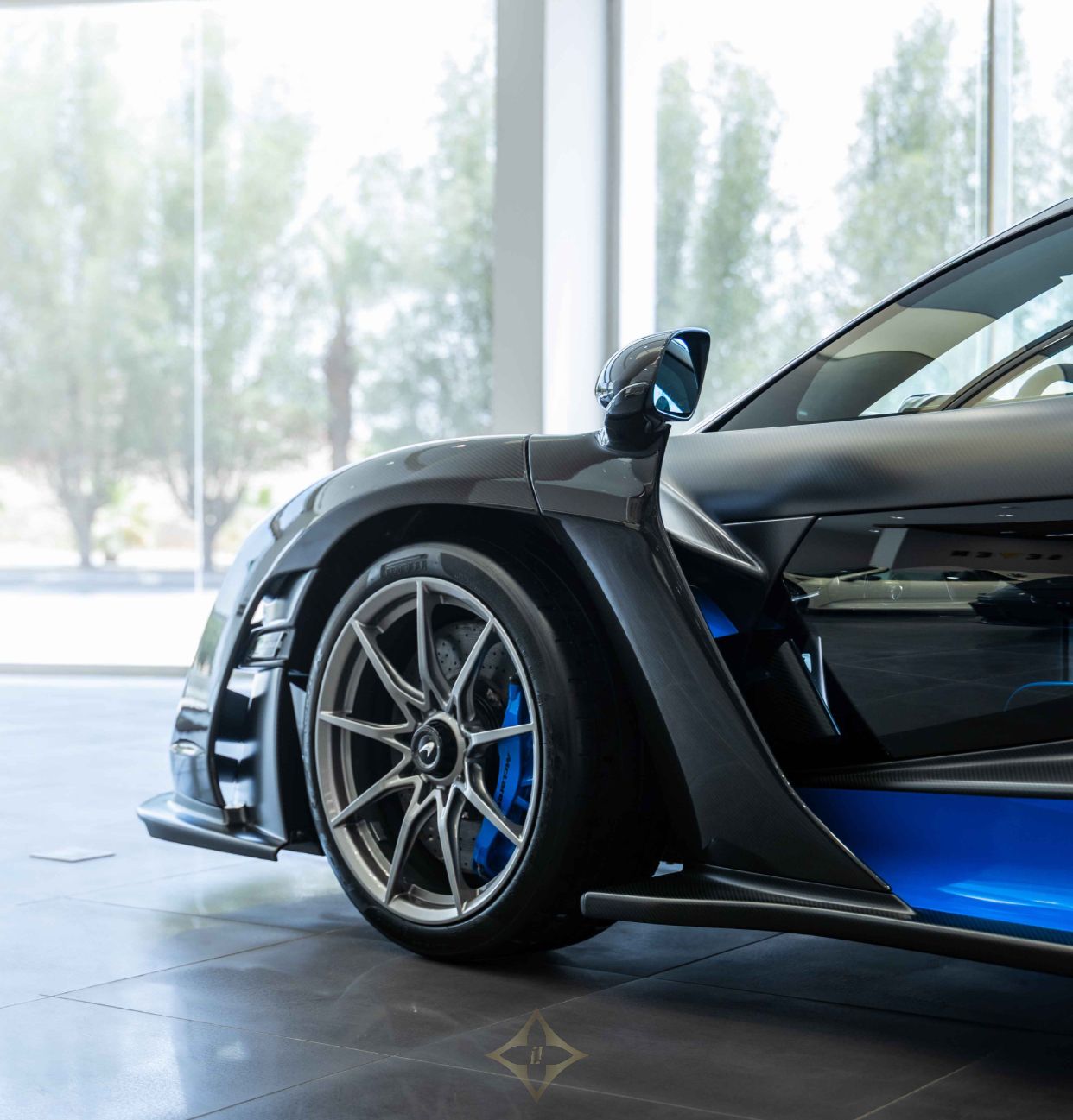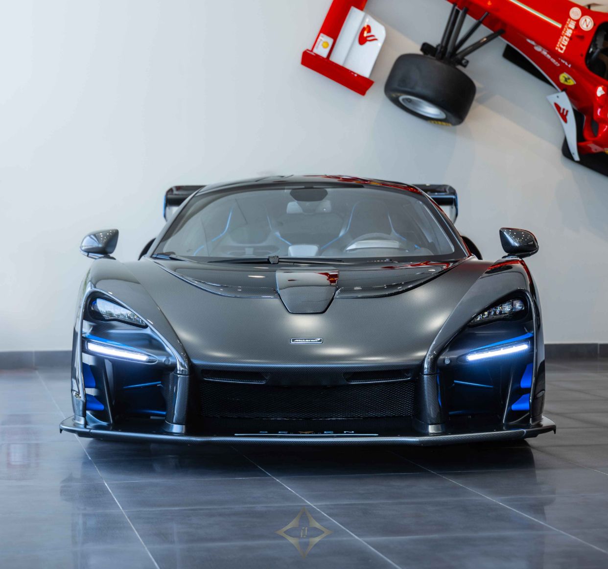 The cabin is designed to place the driver at the center of the experience. Dressed in deep Black Alcantara and finished with MSO Satin Carbon Fibre details, every element reflects a focused, minimalist approach to driving. The Senna logos embossed on the headrests add a subtle yet powerful signature of identity.