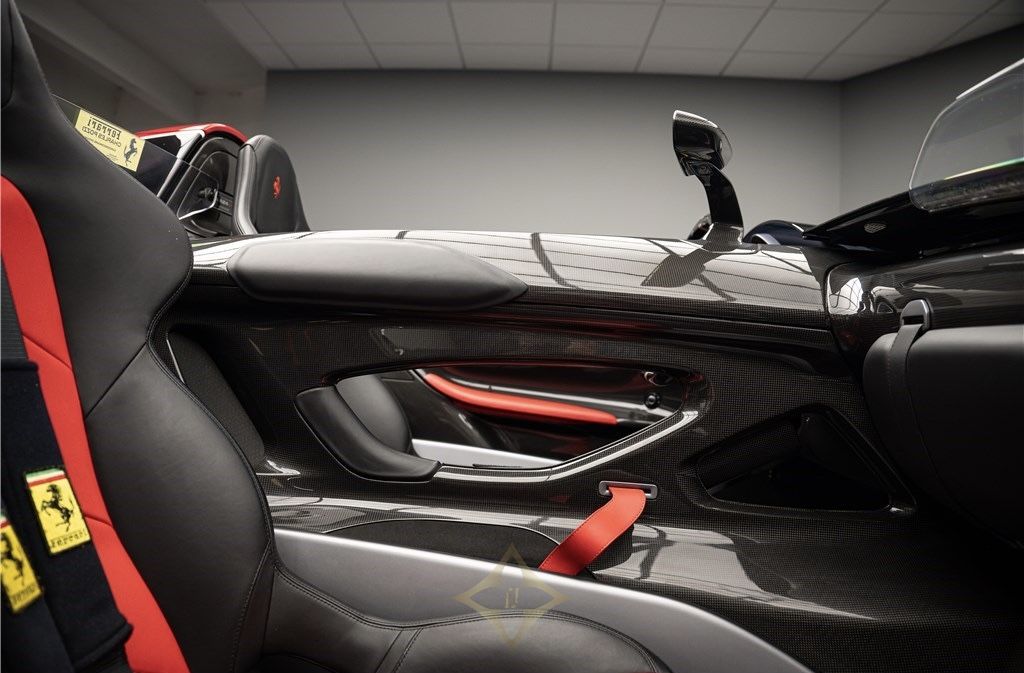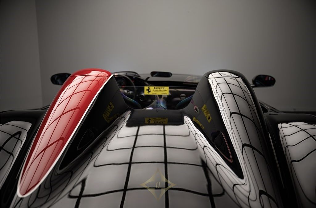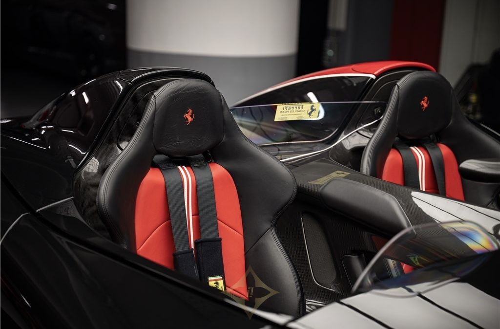 FERRARI MONZA SP2 6.5 V12 810CH Year : 2020 Mileage : 7,909 KM Price : 3,300,000 € Warranty included : Manufacturer's warranty 24 months or 120,000 km Our copy is a first hand bought new from Charles Pozzi. She opts for a Nero Stellato livery with a Rosso Corsa and Bianco King driver's side band. Meaning "Starry Black", the Nero Stellato has a special blend of metallic glitter that gives a starry sky appearance, especially under bright light. The Monza SP2 is part of Ferrari's "Icona" limited series and pays tribute to the legendary barchetta racing cars of the 1950s, offering an extremely pure and uncompromising windshieldless driving experience. GENERAL INFORMATION Year: 2020 Warranty: Manufacturer's warranty 24 months or 120,000 km First hand: Yes Real Power: 810 hp Fiscal Power: 87 hp Km: 7909 Energy: Unleaded petrol Transmission: Sequential box Outer Color: NERO STELLATO Inner Color: NERO/ROSSO Number of doors: 2 Number of seats: 2 OPTIONS UND EQUIPMENT ABS / EBD - Performance anti-lock braking system, with electronic brake distributor Apple CarPlay Visible carbon rim arches Carbon fiber exterior door sill bottoms Carbon fiber filter case Start button (Engine Start) on the steering wheel Carbon fiber heat cover Front and rear parking camera Brightness sensors Front and rear parking sensors Cavallino embroidered on the headrests 4-point belts 4-point seat belts Car key with Keyless Start function Automatic air conditioning Car Dynamic Integrated Control ——— CHARLES POZZI PARIS SHOWROOM 10, RUE CURNONSKY 75017 PARIS, FRANCE Phone number +33 1 47 39 96 50 E-mail : contact@charles-pozzi.fr