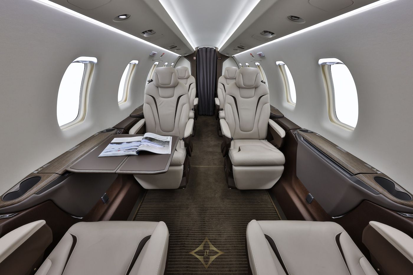 As an addition to the standard cabin configuration, two forward cabinets and two quick-change commuter seats are included in this package along with two Passenger Service Units and armrest stowage compartments. The two rear cabinets are also included in this option, allowing the cabin to be quickly converted between a six or eight seat configuration.