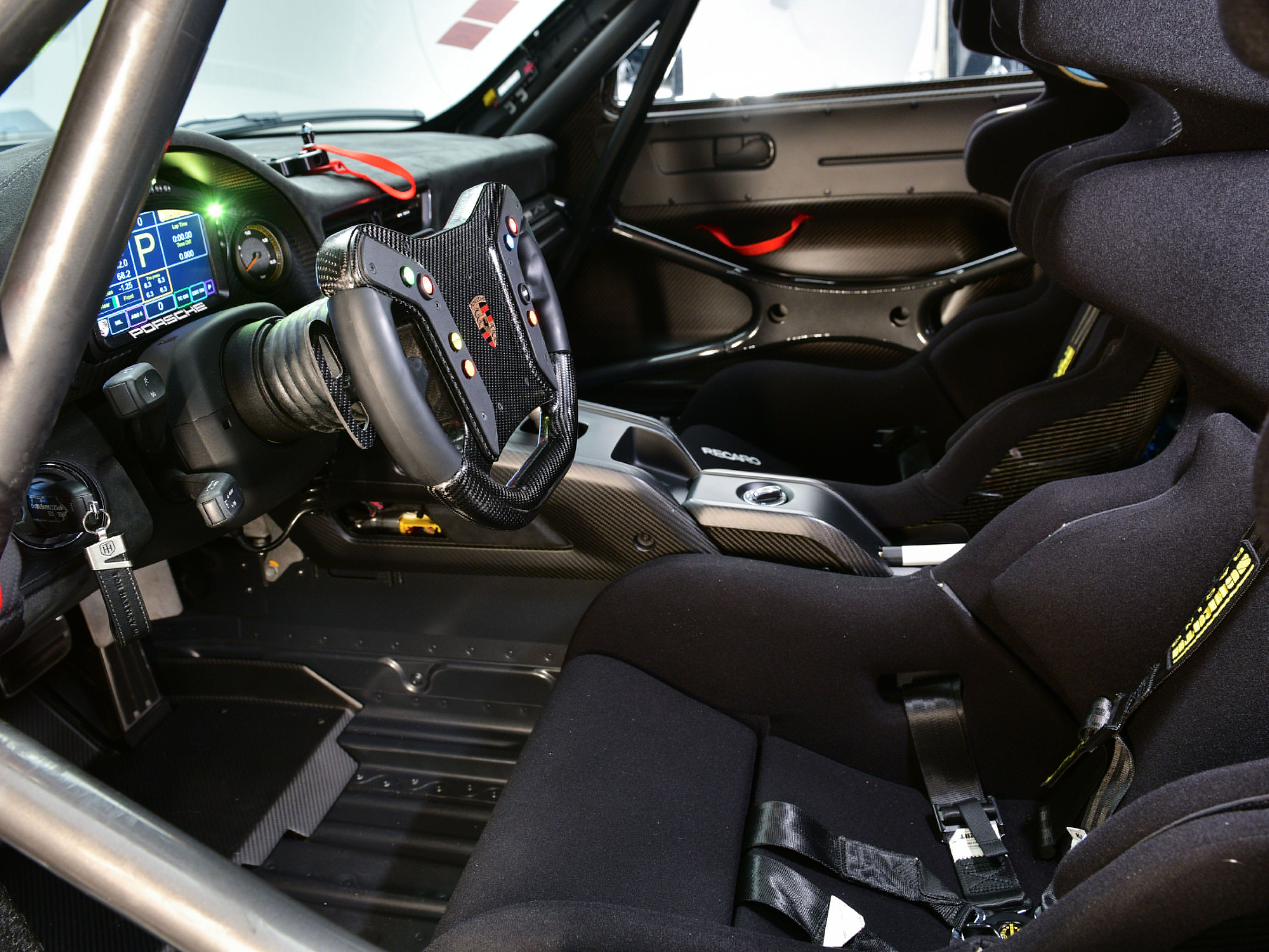 This example was specified with a highly desirable factory option list, including Recaro racing bucket seats with 6-point harnesses, a Cosworth digital dash with integrated data-logger and Sport Chrono, carbon roof, welded-in safety cage, 100-litre FT3 safety fuel cell and a CFK multifunction steering wheel with pit-speed limiter and quick-release coupling, among numerous other track-focused features.