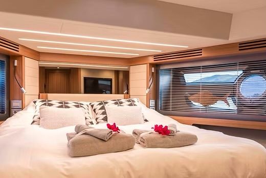This OceanClass 68 sleeps 6 guests in three cabins, all of them ensuite.