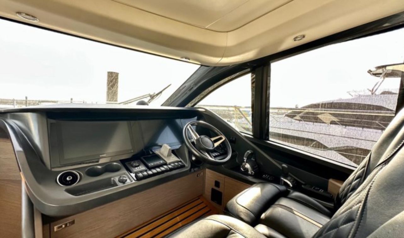 The Princess V55, located in Portugal, is a 2021 model known for its sleek design and remarkable performance. Measuring 17.81 metres in overall length with a beam of 4.65 metres, this vessel incorporates the all-new Princess deep-V resin-infused hull, offering a smoother, more efficient ride and ample space below deck. The two powerful Volvo D13 engines deliver up to 2,000mhp, propelling the boat to a top speed of up to 37 knots. The dynamic exterior, highlighted by panoramic hull windows, conceals a luxurious interior that comfortably accommodates up to six guests across three cabins, including a sumptuous full-beam master stateroom. Key features include an electric opening sunroof, a hydraulic bathing platform, and extensive galley and saloon amenities. The vessel has been impeccably maintained, as evidenced by recent maintenance and retrofitted options, such as the Idromar Watermaker.