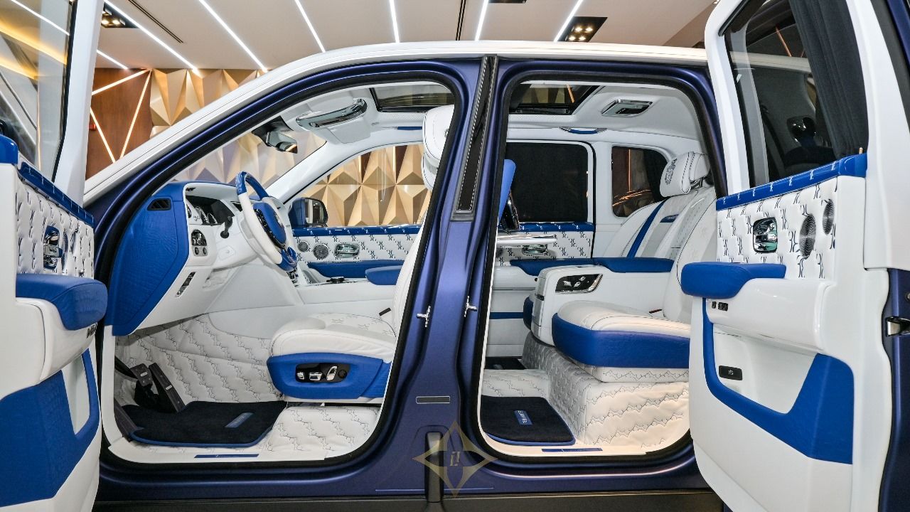 The Rolls-Royce Cullinan Billionaire Edition by Mansory – 1 of 1 (2021)A masterpiece of luxury and customization, this 2021 Rolls-Royce Cullinan Billionaire Edition, officially modified by Mansory, is a one-of-a-kind (1 of 1) vehicle with unparalleled presence. Featuring a stunning blue and silver exterior and a crocodile leather interior, this SUV represents the pinnacle of exclusivity and automotive craftsmanship.