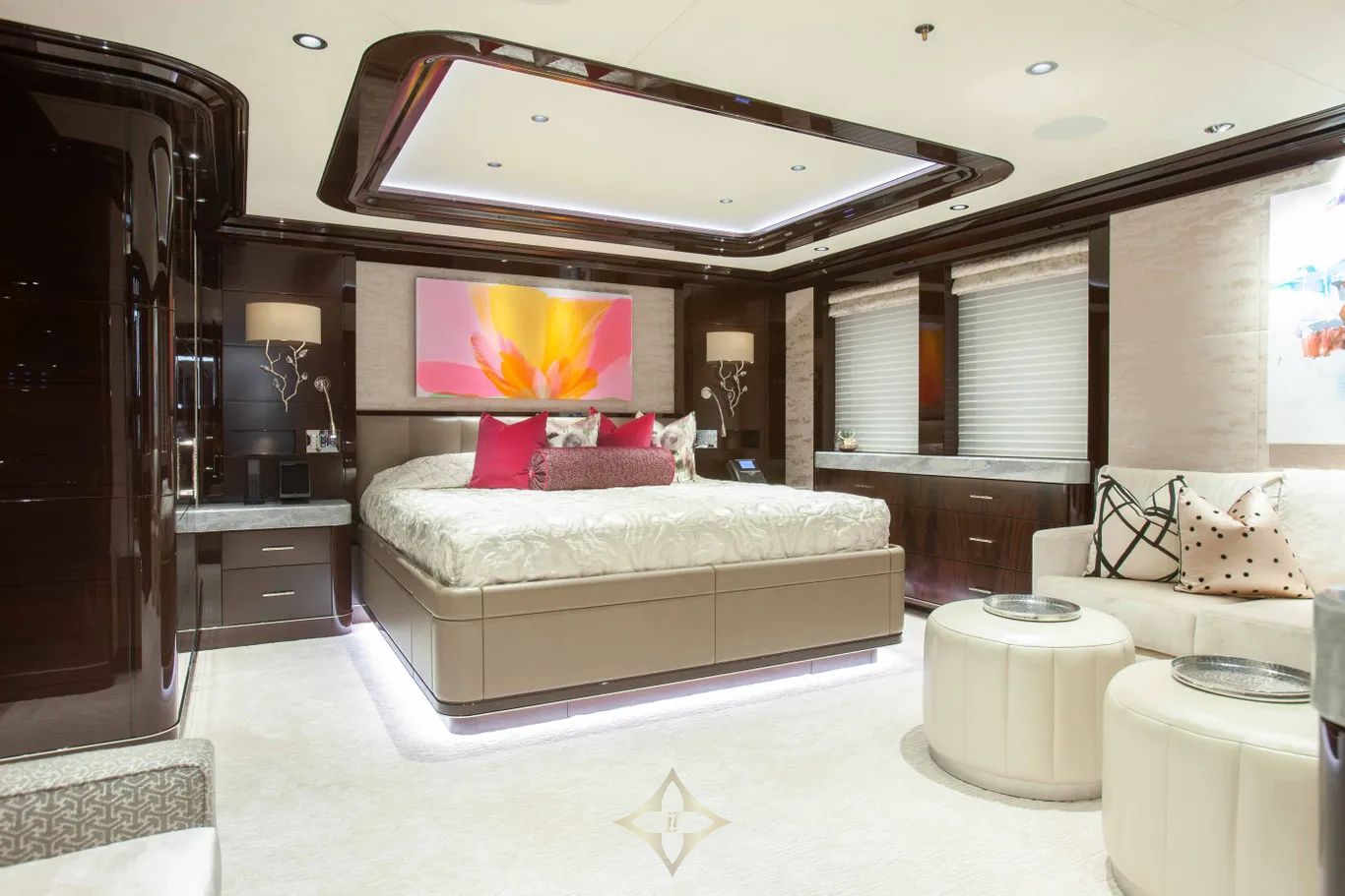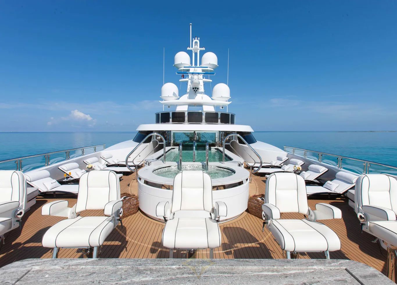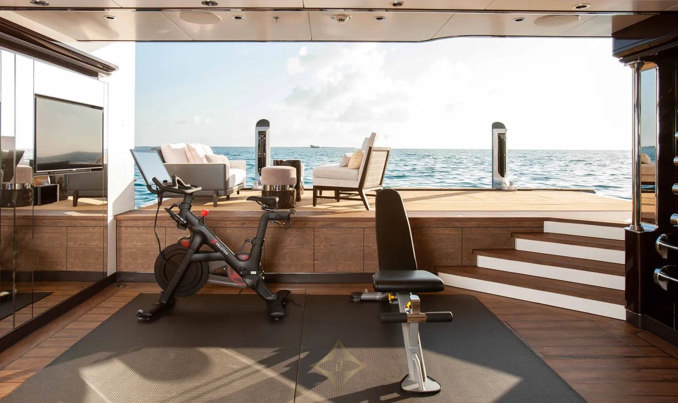 The yacht’s lower deck aft is dedicated to wellness and adventure, featuring a beach and fitness club complete with a dive and watersports locker for unparalleled leisure options. Above, the sundeck is a striking focal point with a beautiful mosaic-tiled pool. While the elevated observation deck offers panoramic views, inviting guests to fully immerse themselves in the surrounding seascape. Boardwalk blends functional design and refined elegance, making her a true standout in the world of luxury yachting.