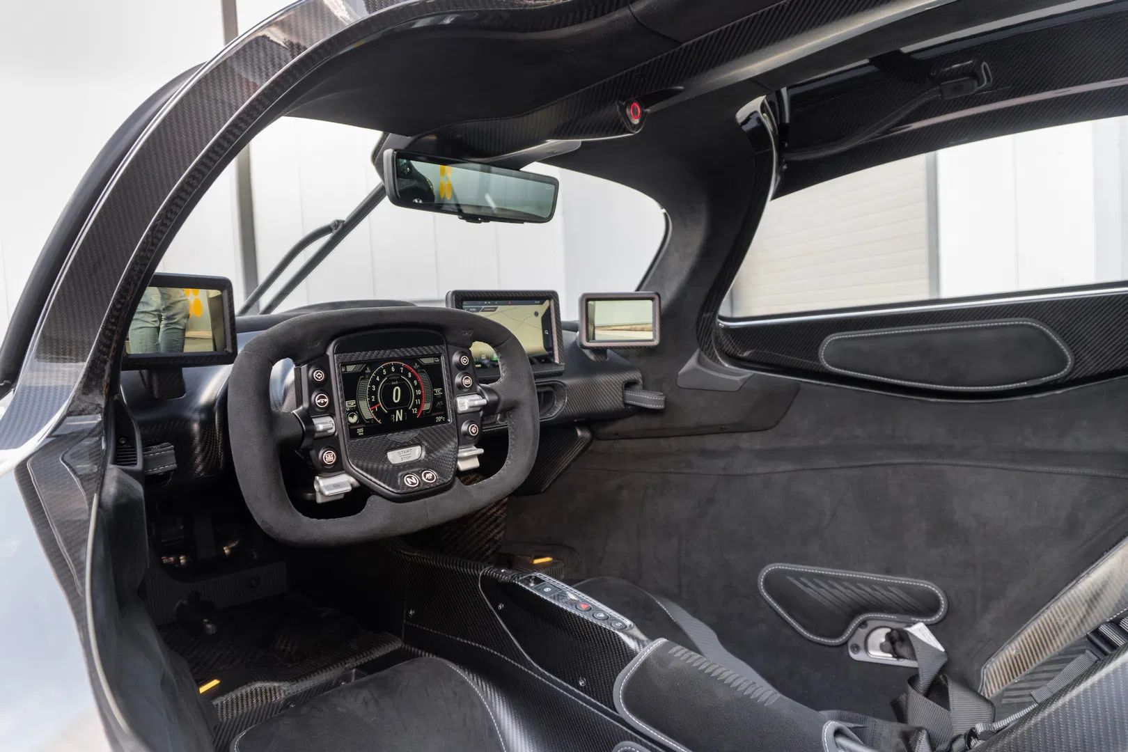 Valkyrie's carbon exterior features an amazing open underfloor that curves around the cockpit. The Valkyrie's extreme floor was designed by F1 guru Adrian Newey and is so spacious in places that you could fit a few adults in it. It results in a downforce of 1,100 kg at 150 km/h and you will not see that in any other road car. Bizarre.
