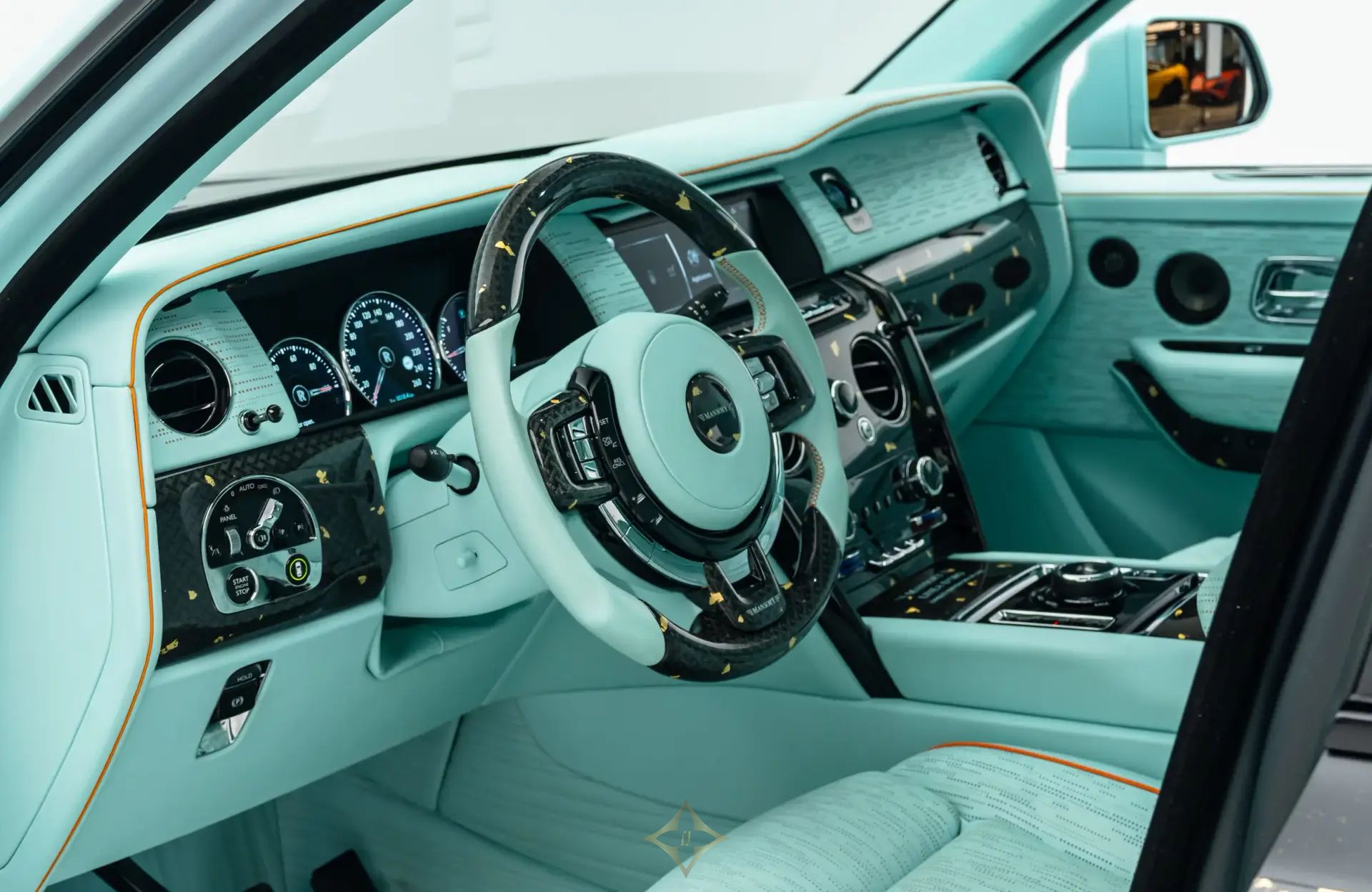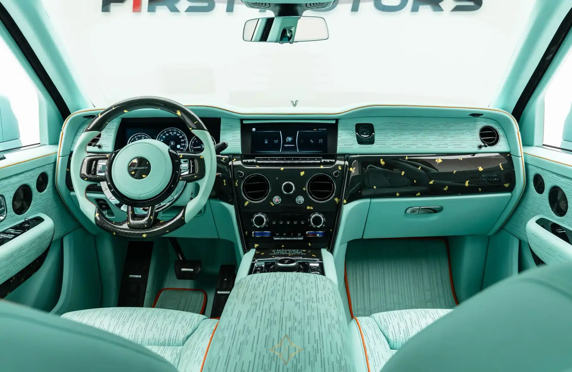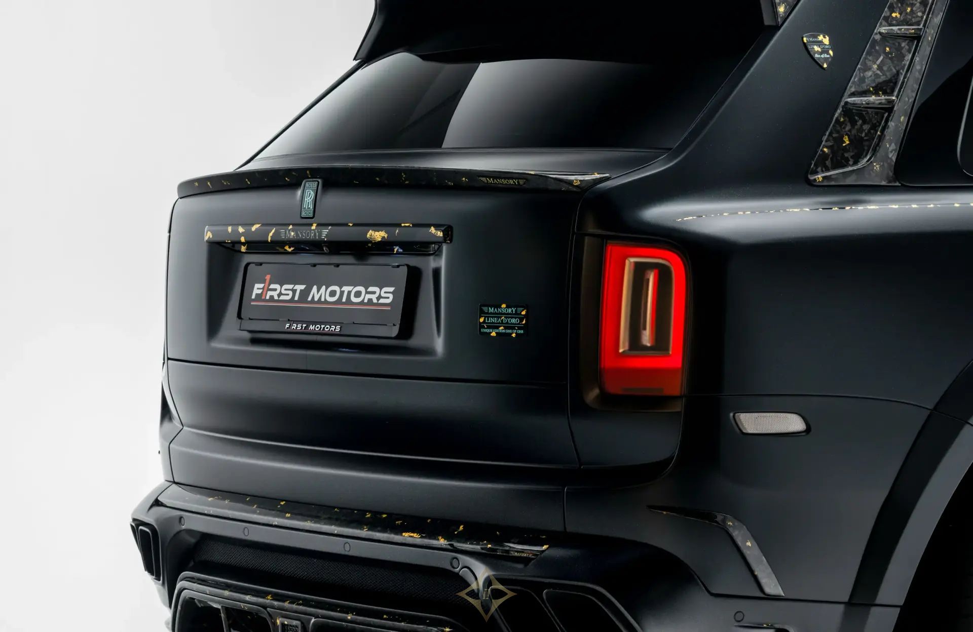 Mansory Cullinan Black Badge Mansory Linea D'ORO 2022 PRICE: AED 2,399,995 Mileage: Brand New Year: 2022 Warranty: Not Applicable Drive Type: All Wheel Drive Engine: 6.75L V12 Twin-Turbocharged Engine Body Type: SUV Transmission: 8 Speed Automatic Transmission Max Power: 602 Horsepower Max Torque: 950 Nm Top Speed: 280 Km/h | 0 - 100 Km/h | 5s Approx Exterior Color: Black / Blue Interior Color: Blue Specifications: Europe Limited To: 1 of 1 Car Id: FMC-11667 Rolls-Royce Cullinan Black Badge Mansory Linea D'ORO MANSORY LINEA D’ORO “One of One” – Art on Wheels. The epitome of bespoke luxury, the Rolls-Royce Cullinan Black Badge has been transformed by Mansory into a truly one-of-a-kind masterpiece, the Linea D’ORO. Crafted under the exclusive “One of One” philosophy, this majestic SUV stuns with its fade paint finish that transitions from a bold bright turquoise to a mysterious shadow black, making it as much a piece of art as it is a vehicle. Every detail screams opulence, from the 24-carat gold leaf accents on the exterior to the lavish gold-plated interior trims—an expression of elegance that’s impossible to overlook. Riding on newly developed forged FD.15 rims in 10x24”, the Linea D’ORO commands attention at every turn. But it’s not just about looks—under the hood lies a formidable 6.75-liter twin-turbocharged V12, delivering 602 horsepower and a massive 950 Nm of torque. Mated to an 8-speed automatic transmission with all-wheel drive, this luxury beast surges from 0 to 100 km/h in approximately 5.0 seconds, reaching a top speed of 280 km/h with grace and authority. The Mansory Linea D’ORO isn’t just one of a kind—it’s unrepeatable. ——— F1rst Motors Address: Danube Building, 409 Sheikh Zayed Rd, Al Quoz 1, Dubai, UAE Email: info@f1rstmotors.com Phone: +971-4-320-1030