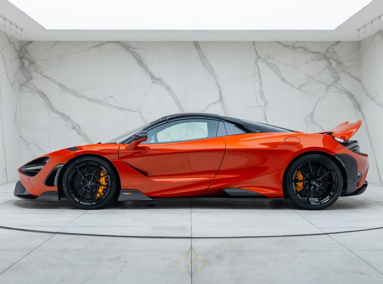 2022 MCLAREN 765LT SPIDER PRICE: £344,950 COLOUR: Ember Orange Elite INTERIOR: Black 'By McLaren' Alcantara YEAR: 2022 (22) MILEAGE: 6,686 Miles ENGINE: 4.0L Twin-Turbo V8 TRANSMISSION: 7-Speed SSG BODY STYLE: Convertible FUEL: Petrol KEY INFORMATION Finished in Ember Orange Elite Paint Full McLaren Service History Extended McLaren Manufacturer's Warranty until March 2026 Paint Protection Film (PPF) Applied to Whole Car UK Supplied OPTIONS 19/20-Inch 10-Spoke Ultra-Lightweight Forged Wheels in Diamond Cut with Laser Etched 765LT Branding Ember Orange Elite Paint Carbon Fibre Front Fender Louvres By McLaren Alcantara Interior Pack 12 Speaker Bowers & Wilkins Audio System Sports Seats Front & Rear Parking Sensors with Rear View Camera Air Conditioning McLaren Track Telemetry – App Only Door Stowage Pocket with Net Carbon Black Alcantara Steering Wheel with Carbon Fibre Paddles McLaren Orange 12 o’clock Steering Wheel Mark Orange Seatbelts Branded Floor Mats McLaren Orange Brake Calipers & Black Logo Privacy Glass Paint Protection Film (PPF) Applied to Whole Car ADDITIONAL FEATURES 8-Inch High Resolution Touch Screen Monitor Carbon Ceramic Brakes Carbon Fibre Exterior Upgrade 1 (Including: Hood Air Intakes + Rear Fender Air Intakes + Door Mirror Casings) Carbon Fibre MonoCage II – Visible Carbon Fibre Carbon Fibre Primary Interior Components (Including: Window Switch Surrounds + Steering Wheel Clasp + Active Dynamics Panel Surround) Centre Tunnel Satin Finish Carbon Fibre Vehicle Lift MIS (McLaren Infotainment System) Soft Close Doors Tyre Pressure Monitoring System The McLaren 765LT is far more than just the track-focused evolution of the 720S - it’s the latest chapter in one of McLaren’s most exclusive bloodlines. Inspired by the legendary F1 GTR Longtail - a Le Mans winner of which just 10 examples were built - the LT name is reserved only for McLaren’s most extreme road cars. Following in the footsteps of the 675LT and 600LT, the 765LT delivers a purist driving experience with enhanced power, aggressive weight-saving, and race-derived engineering. Just 765 coupés and 765 Spiders were built globally, with surprisingly few available in the UK, making this one of the rarest and most sought-after modern McLarens. Performance is staggering: 755bhp, 0–62mph in 2.8 seconds, and an obsessive focus on weight reduction, including a polycarbonate rear window, carbon fibre components, and a quad-exit titanium exhaust that defines its presence and sound. Key components from the McLaren Senna including brake calipers and forged pistons underscore its serious intent. Visually, the 765LT is sculpted for aerodynamic efficiency and dramatic effect, with every curve and vent designed to serve function as much as form. For collectors, the 765LT is a future classic - an ultra-limited, motorsport-inspired Longtail that honours McLaren’s racing heritage while offering one of the most visceral driving experiences available today. ——— Romans International Brighton Road, Banstead, Surrey, SM7 1AT, UK Phone: +441737 428 863 Email: sales@romansinternational.com